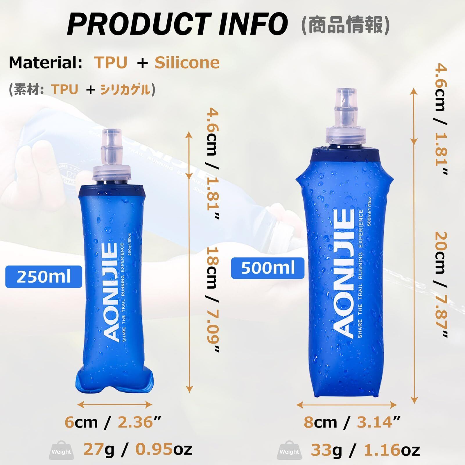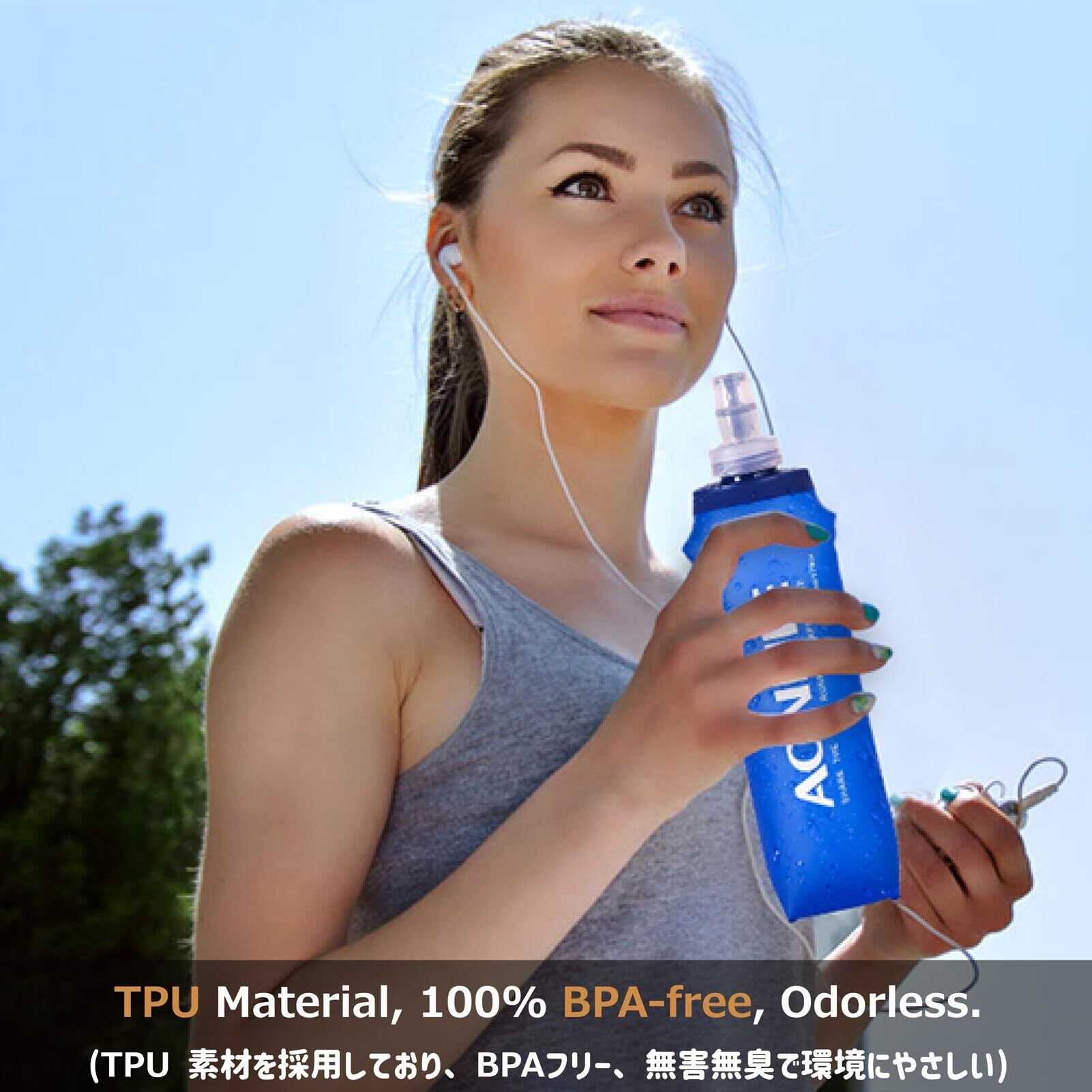 Azarxis ハイドレーション ボトル 折りたたみ水筒 TPU 携帯式ウォーターボトル ソフト フラスク 軽量 給水 ランニング マラソン 登山 トレイル サイクリング アウトドア 250ml 350ml 450ml 500ml