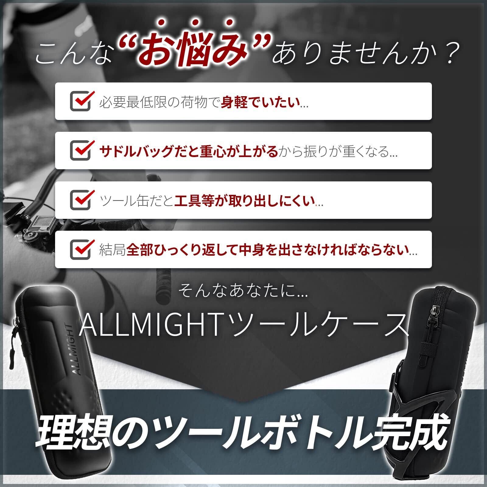 ALLMIGHT (オールマイト) ツールボトル OrthodoxLong ジップホルダー付き L22.5cm ロードバイク 重量約96g PU撥水性上質素材 止水ファスナー