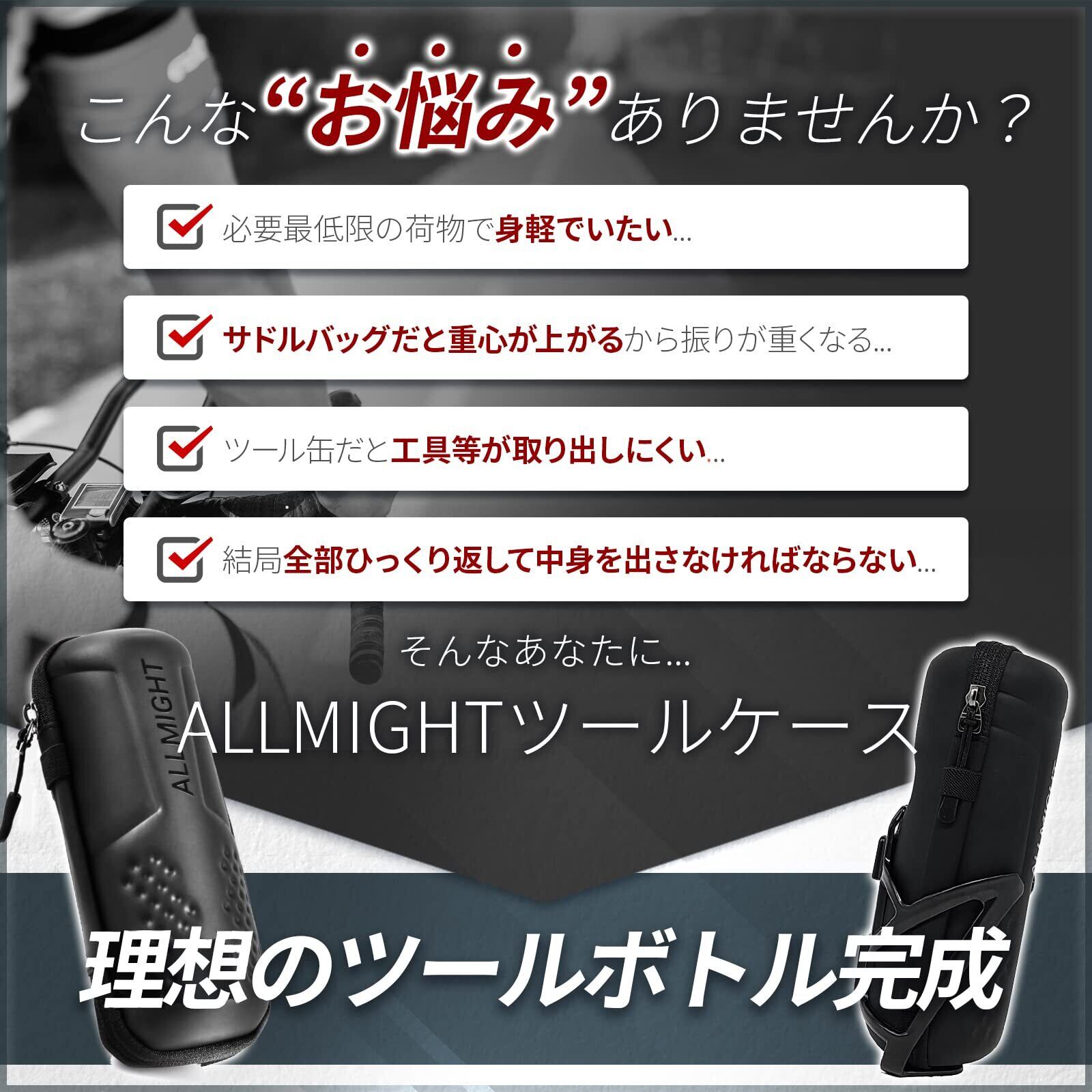 ALLMIGHT (オールマイト) ツールボトル Orthodox ジップホルダー付き L20cm ロードバイク 重量約86g PU撥水性上質素材 止水ファスナー