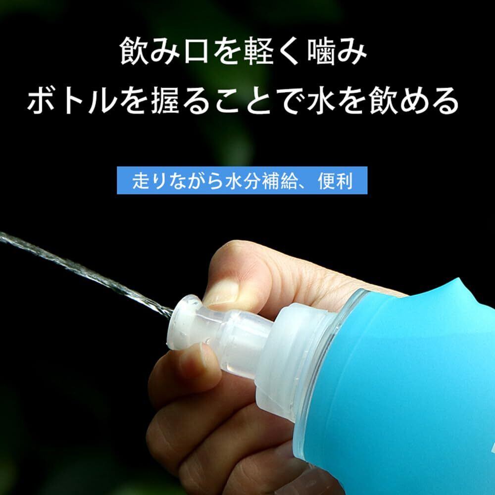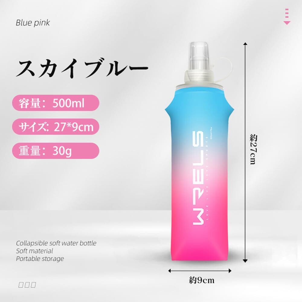 ソフトフラスク ハイドレーション フラスク トレラン ランニング 水筒 ボトル マラソン 登山 給水ボトル 250ml/500ml 折りたたみ水筒 水分補給 軽量 トレイル サイクル(500ml、水色)