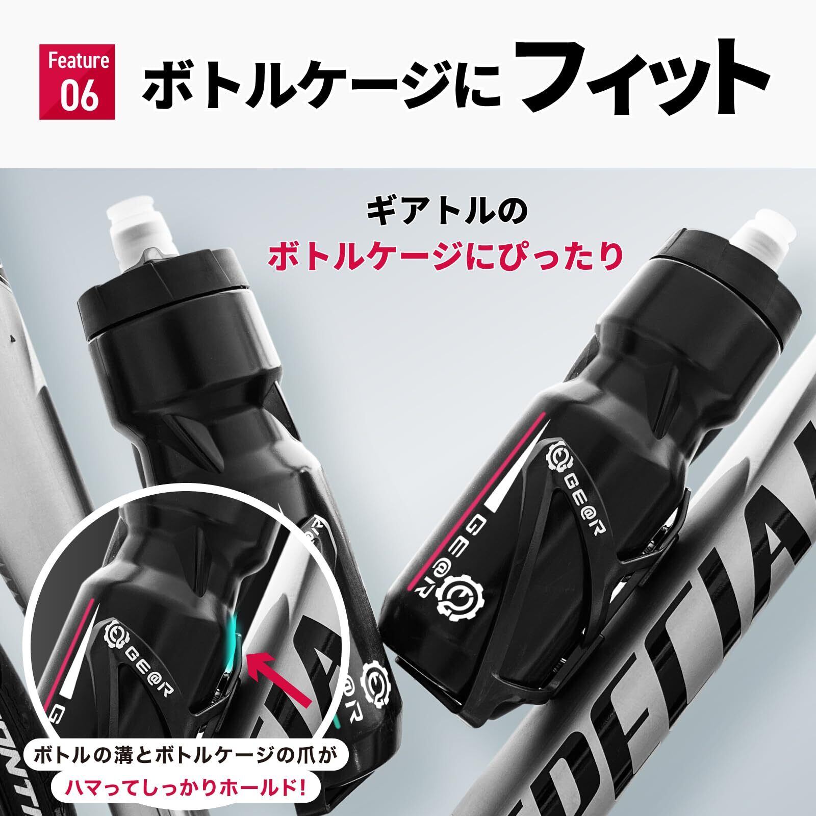 【ボトルケージにfit】自転車用ボトルとして設計されたこのウォーターボトルは、ボトルケージやペットボトルホルダーにぴったりフィットします。ロードバイク用品としても優れており、ボトルケージにスムーズに挿入できるよう底面部に勾配が設けられています。ボトルをしっかりとホールドできる溝があり、サイクリング中にボトルが脱落するのを防ぎます。