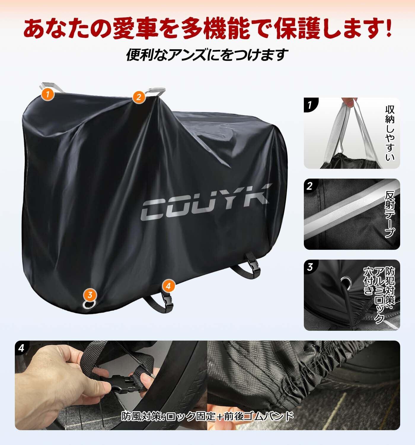 【収納便利と巨大容量】最大29インチのハブを収納できる自転車で、ロードバイク、家庭用自転車、折り畳み自転車、電動自転車、一般的なオートバイを完全に包むことができます。楽に折りたたみやすく、収納が便利です。サイズ:長さ200cmX幅75cmX高さ110cm(XXL)、COUYK専用収納袋。
