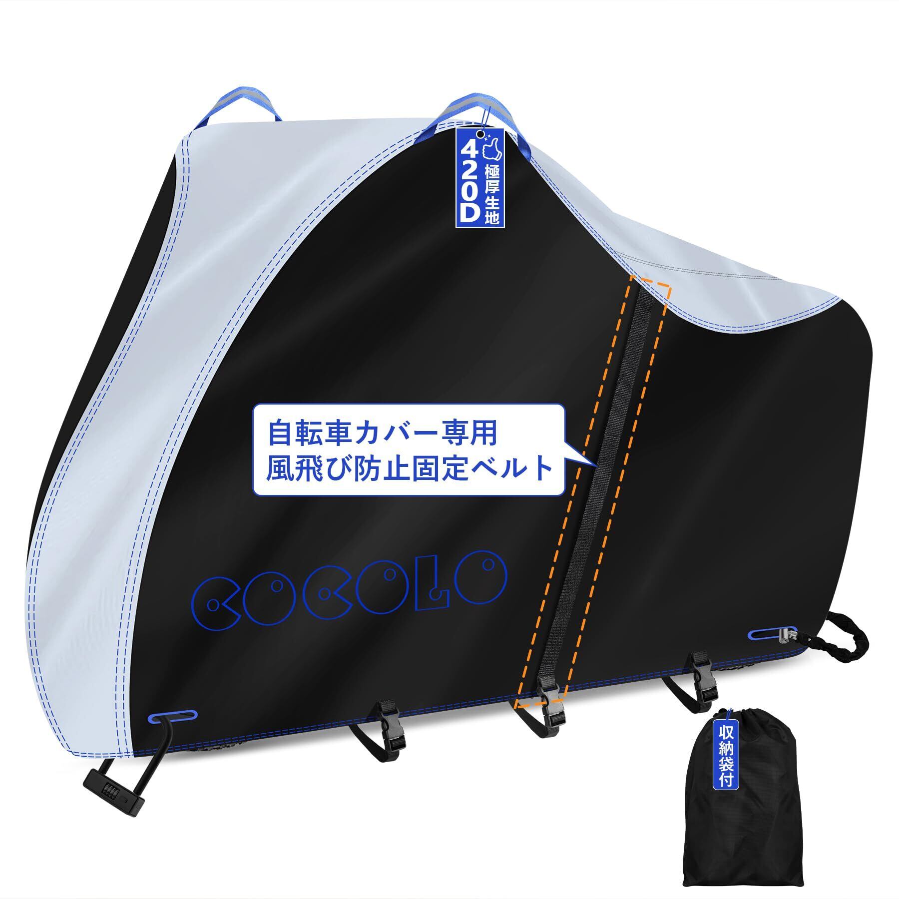 COCOLO 自転車カバー 防水 厚手 破れにくい風飛び防止 雨避け 紫外線カット 収納付き (通常用29インチ迄対応/ブラック)