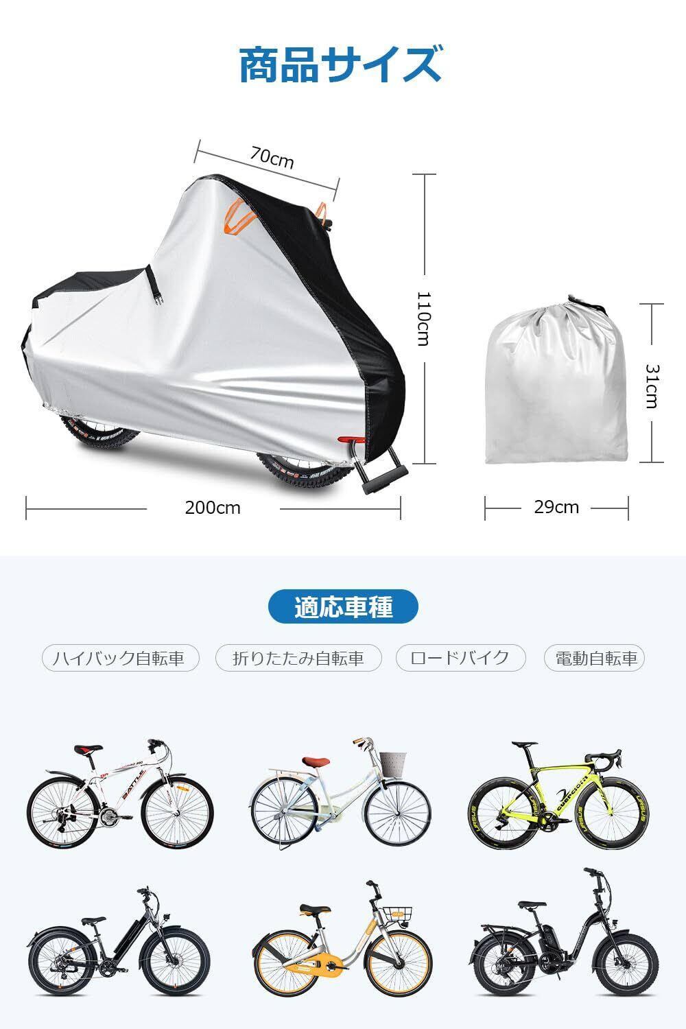【2サイズ 自転車カバー】200*110*70cmと150*85*60cmの2サイズをご用意しています。200*110*70cmは電動自転車、一般成人用自転車、マウンテンバイクなど、ほとんどの標準的な自転車(29インチまで対応)に対応します。150*85*60cmは子供用自転車(20インチまで対応)に最適です。自転車のサイズに合わせてお選びいただけるため、ぴったりフィットするカバーが見つかります。