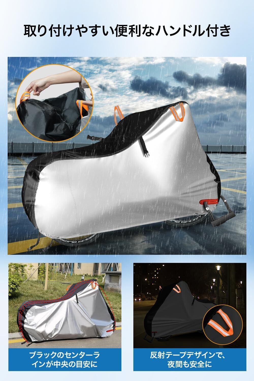 自転車カバー サイクルカバー 300D生地超厚手 破れにくい 防風 防塵 耐熱 UVカット 撥水加工 二重縫製 盗難防止ロック穴付き 風飛び防止バックル 反射テープ 収納袋付き 29インチまで対応