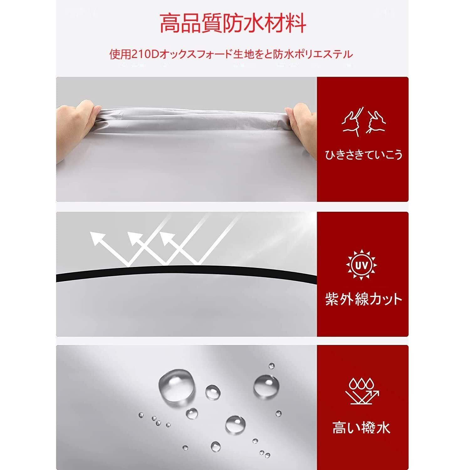 【通気性もしっかりキープ】:高品質な250Dオックスフォードの厚手生地を採用することによって、従来のナイロン製のものよりもはるかに厚手で丈夫で、耐久性の高い自転車カバーに仕上がっています。また、撥水性能も十分ですが、通気性も十分にありますので、内部の自転車のコンディションを維持することができます。