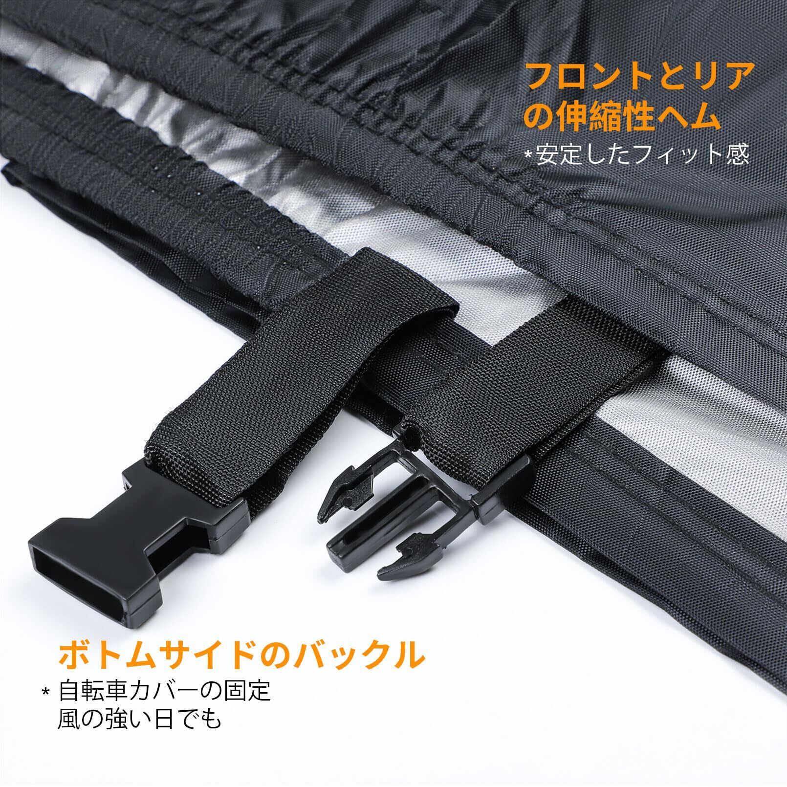 【超厚420Dオックス生地&高耐用性】高品質420Dオックスフォード布を採用。厚手な自転車かばーは420D高密度のオックス生地で精密な2本針二重環縫ミシンを採用して、よりも厚くて丈夫で、破れにくい、耐久性に優れています。以前の商品より、使用寿命は2倍長いです。 雨・紫外線・霜・風・砂ぼこりなどの天候から大切な自転車をお守り致します。