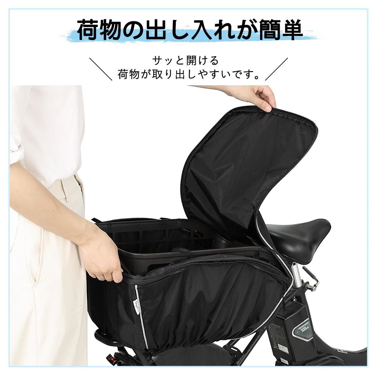 自転車 カゴカバー 後ろ 防水 二段式 容量アップ 撥水加工 止水ファスナー 反射帯付き 自転車 バスケット 後ろ レインカバー 日よけ 雨よけ GyuPit
