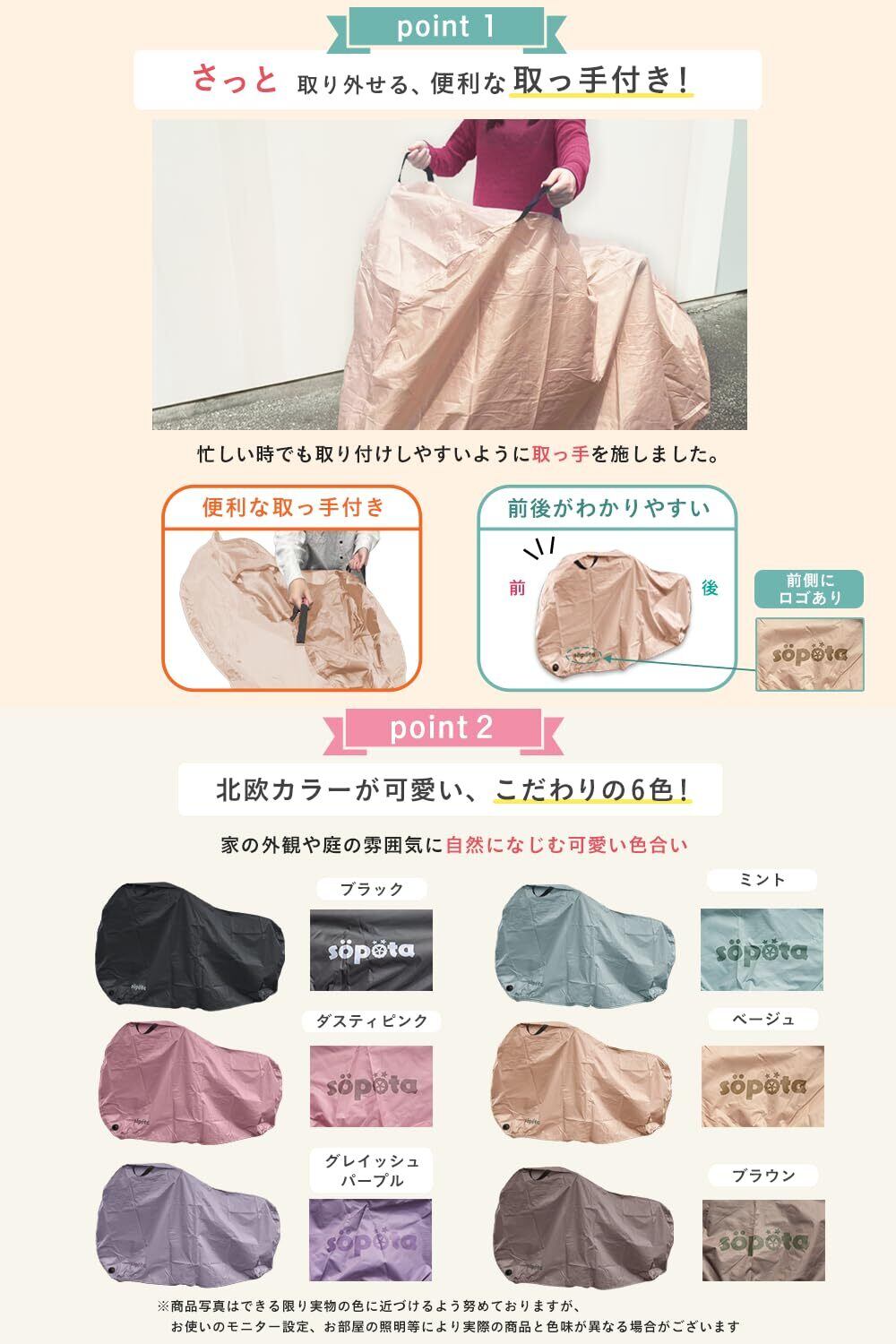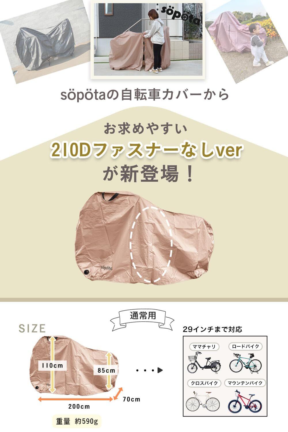 söpöta 自転車カバー 防水 厚手 破れにくい 電動自転車 210D 29インチまで対応 おしゃれ ソポタ SOP-CO (通常用/ブラウン)