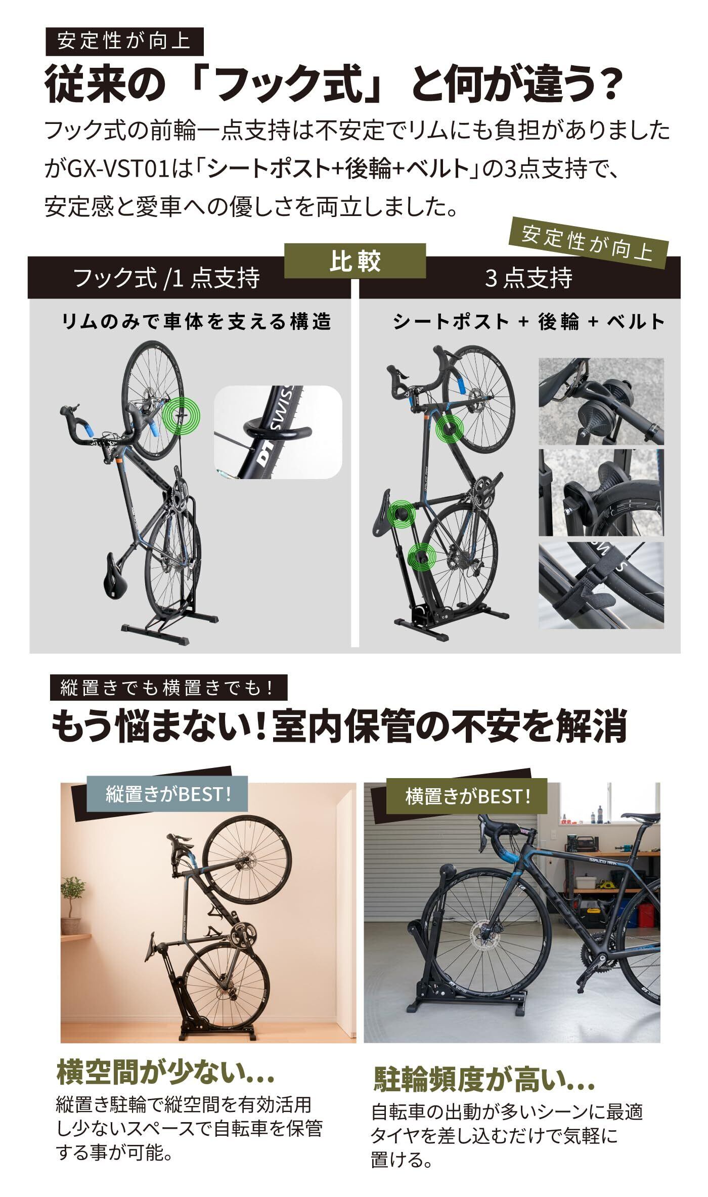 GORIX(ゴリックス)自転車 スタンド 縦置き 横置き 1台 屋内 倒れない ロードバイク / 3点支持構造 /省スペース/L字 /20-29インチ対応 室内 サイクルスタンド ミニベロ クロスバイク mtb スチール製自立スタンド (GX-VST01)