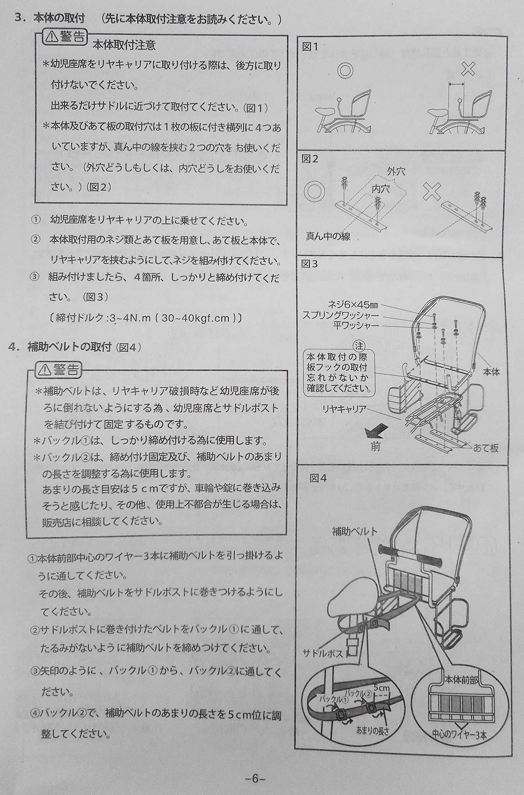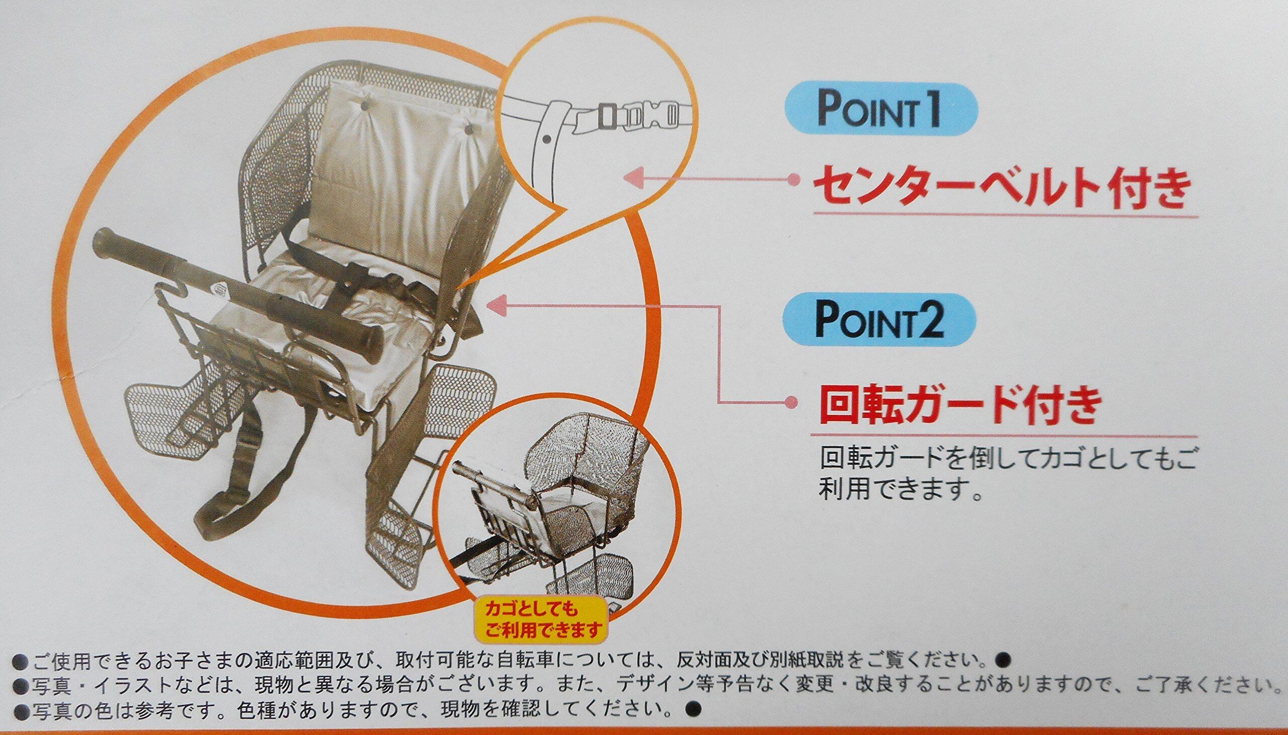 取付条件:両立スタンド装着車に限る。ドレスガード装着車に限る。後用幼児座席が取付可能な規格基準を満たす強度のある自転車。後用幼児座席が取付可能なリアキャリヤ装着車。