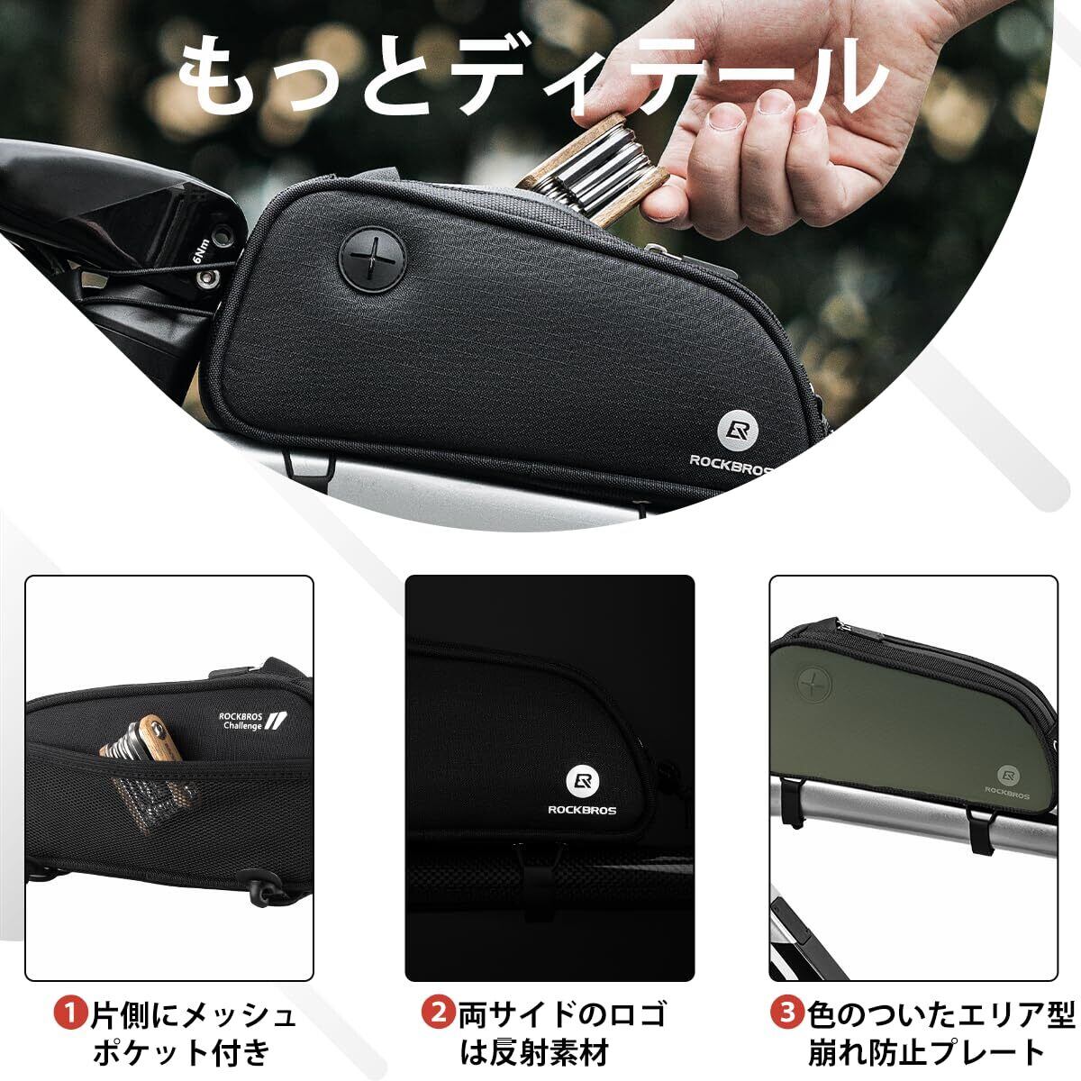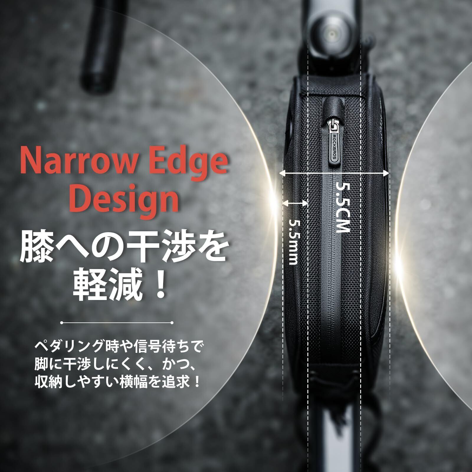 ROCKBROS(ロックブロス)トップチューブバッグ 自転車 ロードバイク バッグ 簡単装着 スリム フレームバッグ 収納バッグ 軽量 小物入れ 膝に当たらないデザイン サイクリング