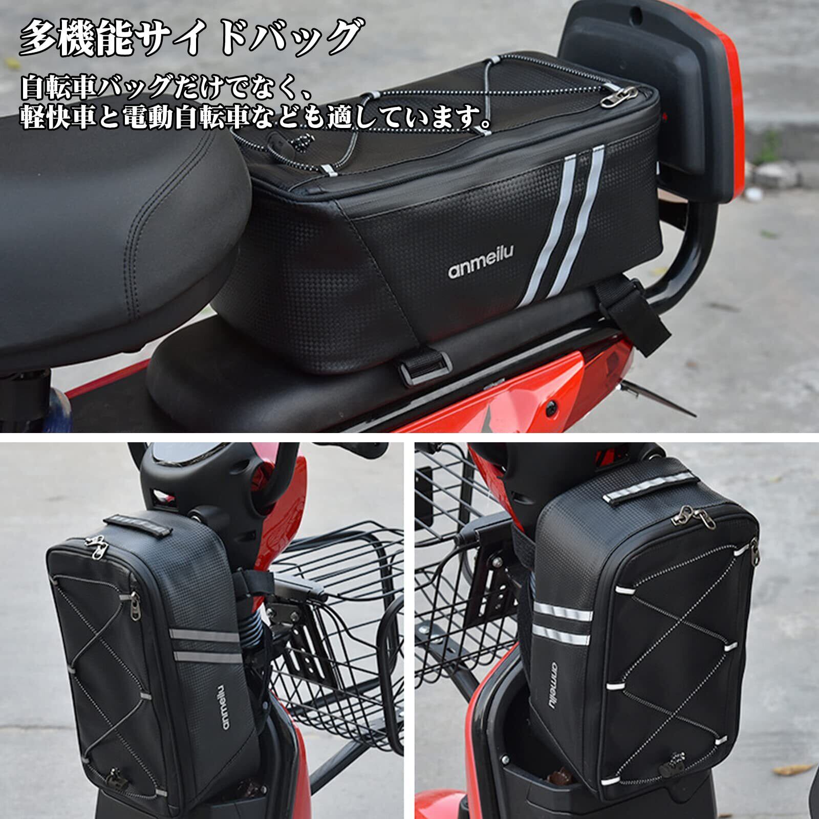 【取り付け簡単】パニアバッグは底に固定バンドがあるので、リアラックに簡単に素早く締め付けて、また取り外しにも簡単です。ストラップの長さは調節可能で、自転車だけでなく、電気自動車も適しています。