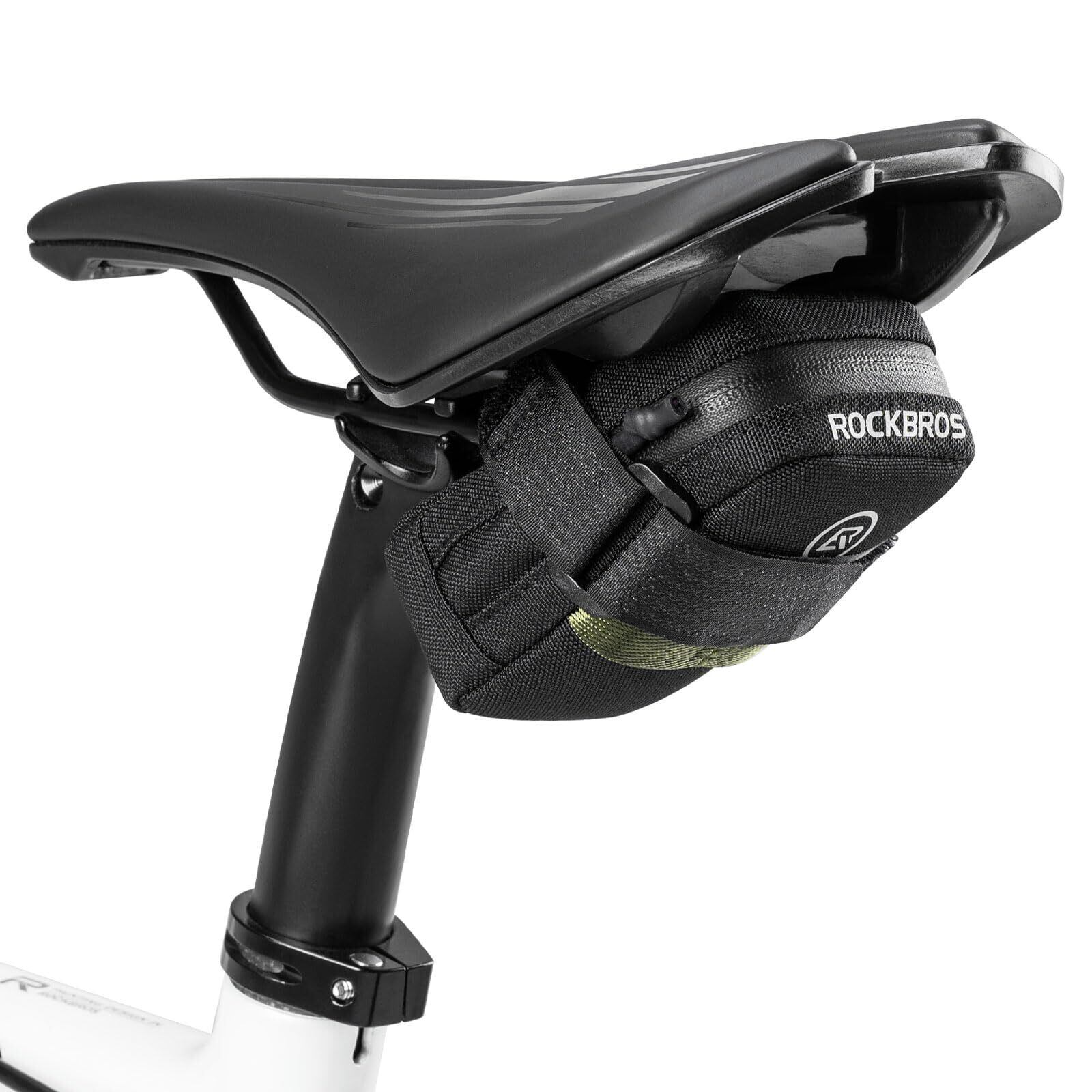 ROCKBROS 自転車 サドルバッグ ロードバイク バッグ ミニサイズ 自転車バッグ 小型 コンパクト 超軽量 小物入れ 安定感 収納便利 反射材付き 取り付け簡単 (ブラック)