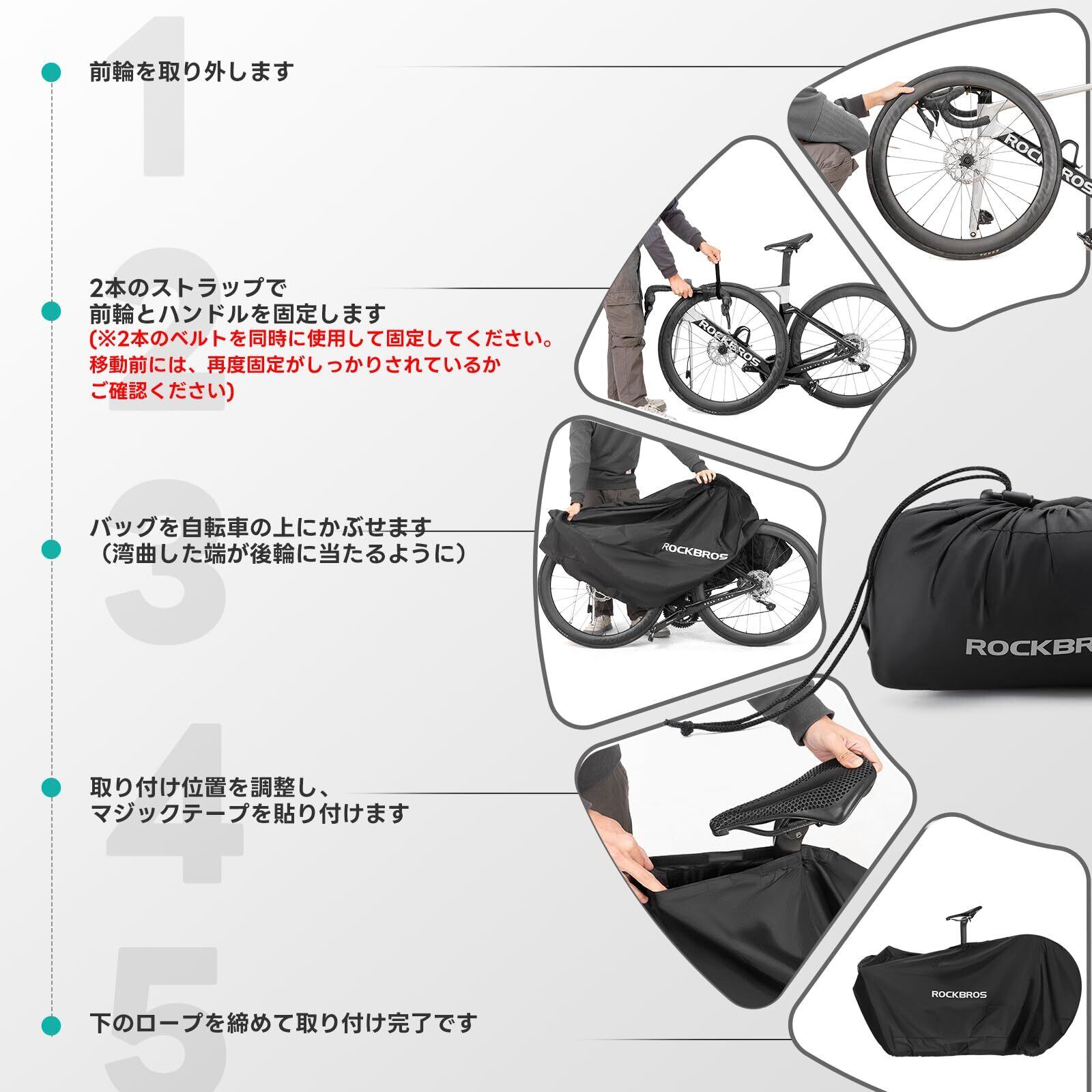 ROCKBROS 自転車輪行袋 輪行バッグ コンパクト 軽量 防水 横型 前輪外し 肩紐 27.5インチMTB マウンテンバイク 700Cロードバイク クロスバイク 自転車キャリーバッグ サイクリング 電車旅行 収納 移動用(ブラック)