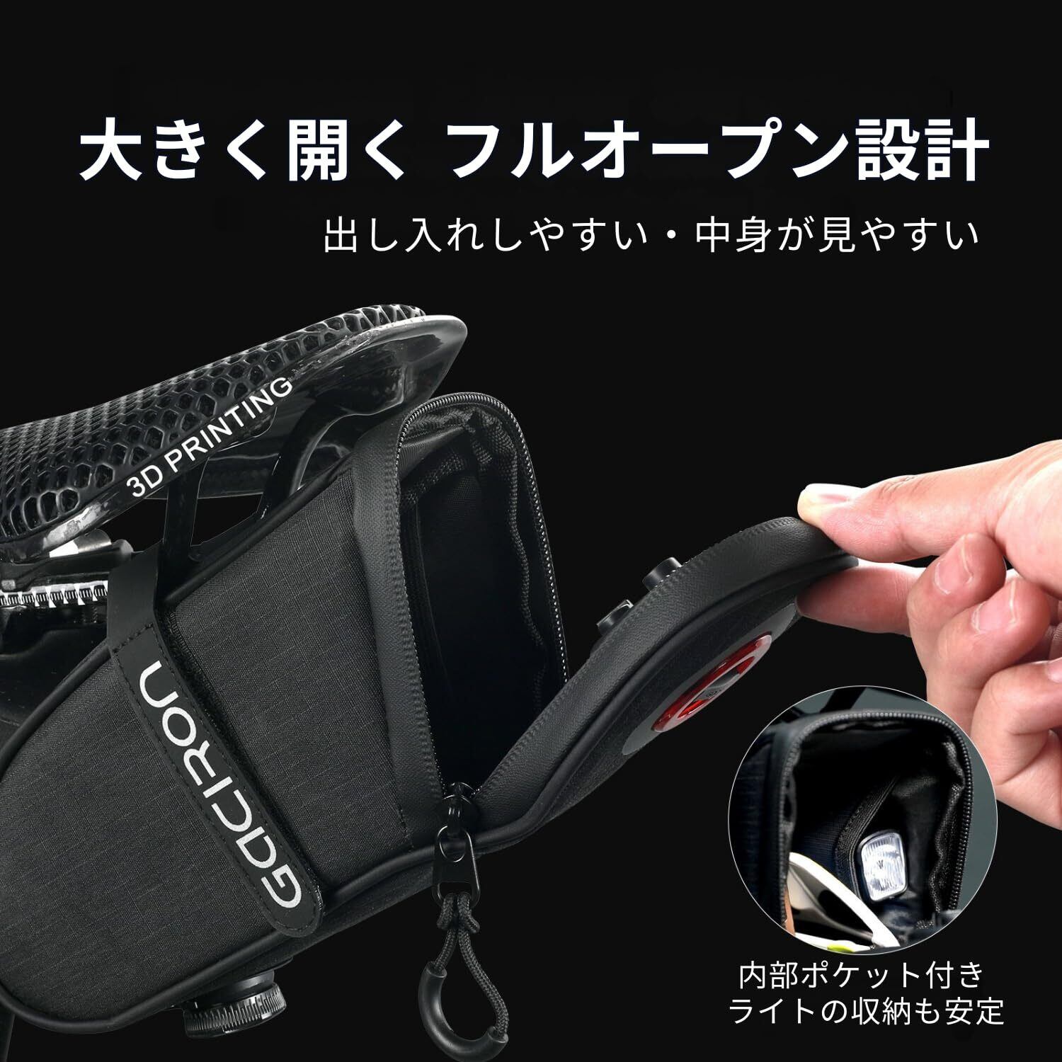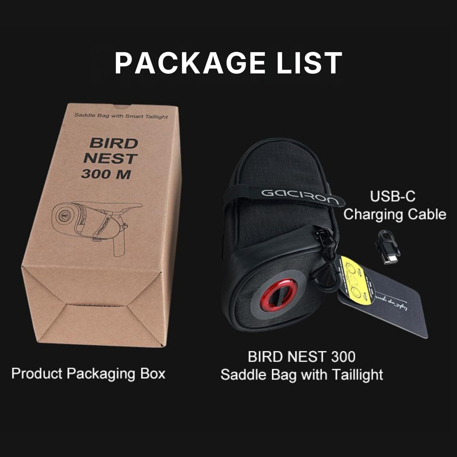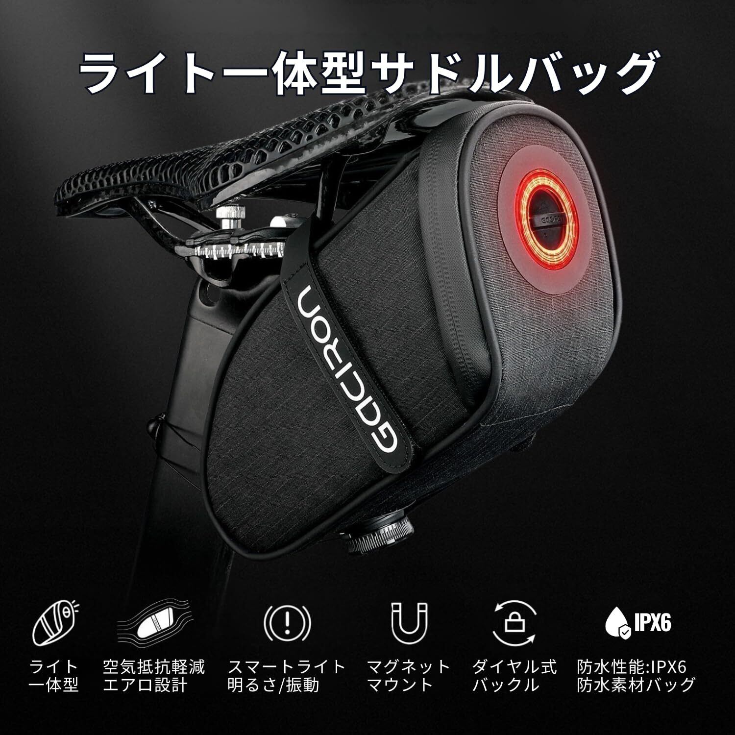 Gaciron (ガシロン) BIRD NEST-300 リアライト一体型 サドルバッグ 30lm テールライト USB Type-C充電 光感知・振動センサー搭載 デイライト対応 IPX6防水 止水ジッパー エアロデザイン 自転車 (Sサイズ)
