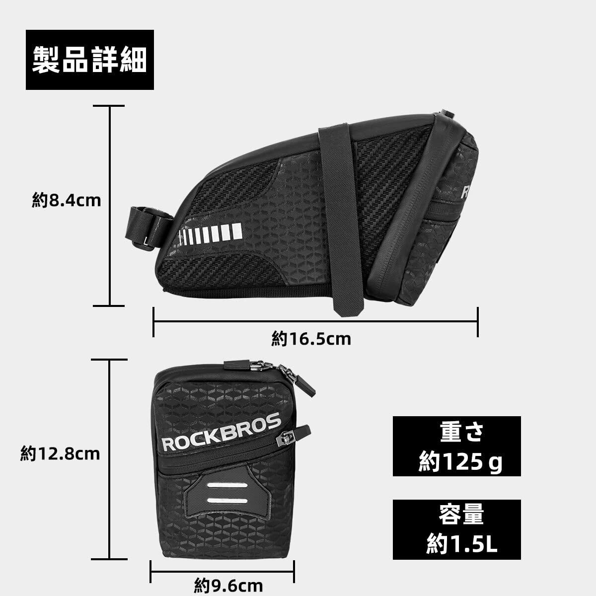ROCKBROS サドルバッグ 自転車 バッグ ロードバイク フレームバッグ 大容量 1.5L 反射材付き テールライト装着可能 ストラップ式 防水ファスナー 取り付け簡単 軽量 ロード MTB クロスバイク サイクリング