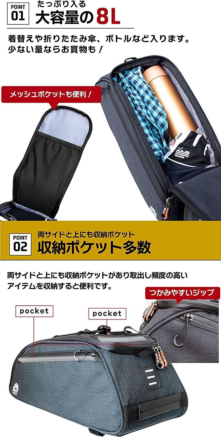 GORIX(ゴリックス)自転車 キャリアバッグ リアバッグ 多機能 防水撥水 ロードバイク 自転車通勤 耐久・安定性 ショルダーベルト付属