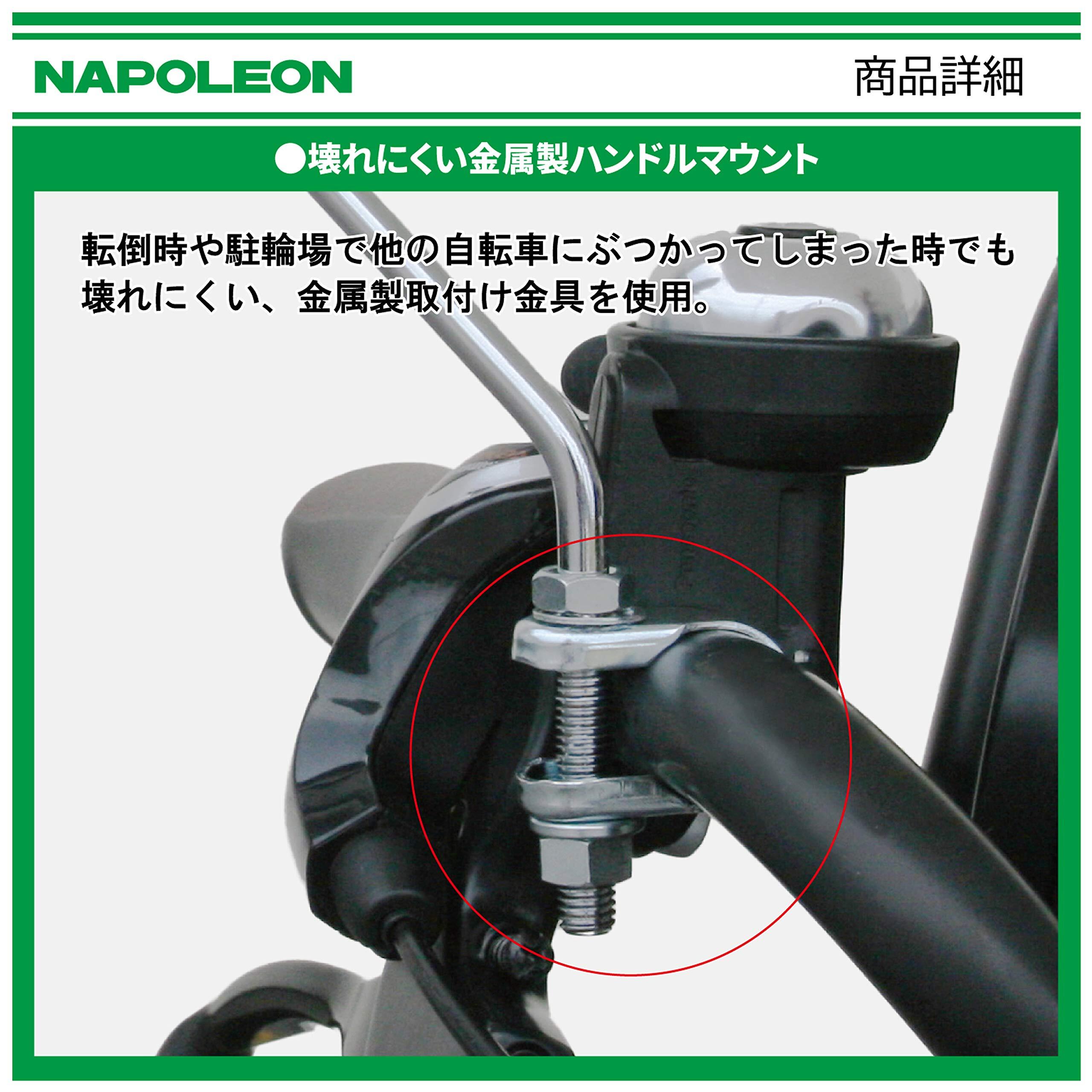 ハンドルへの取り付けはスチール製マウントを使用。転倒時にも壊れにくいので重量のある電動アシスト自転車でも安心です。