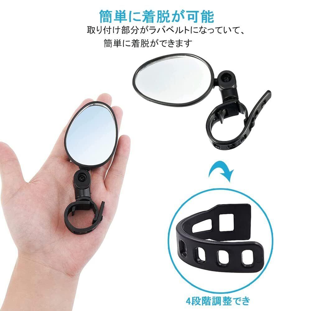 【簡単に着脱が可能】:ゴムバンドのみの固定なので、4段階のサイズ調整が可能で、自転車バックミラー部分は横に360度、斜め下へ180度の角度調整が可能。