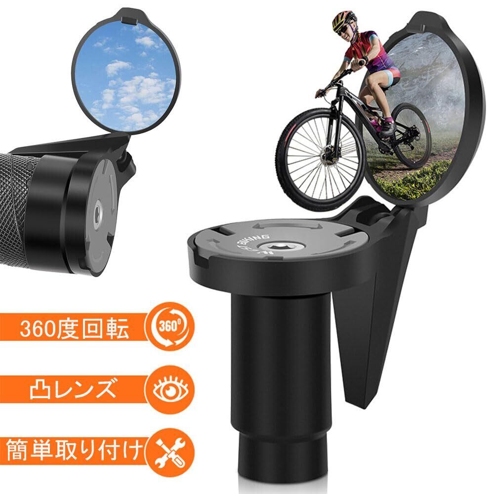 自転車 ミラー ハンドル バーエンドミラー 小型 広角視野 円形凸面镜 ハンドル径16-22mm 360°角度調整可能 自転車のハンドルバー 取り付け簡単 レンチ付属 (ブラック)