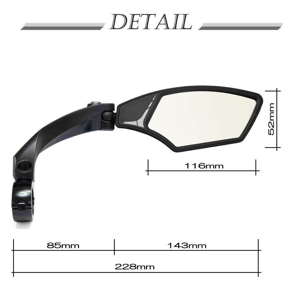 サイズ : ミラー部 幅約116mm × 最大高さ約52mm ハンドル部取り付け径21~26mm