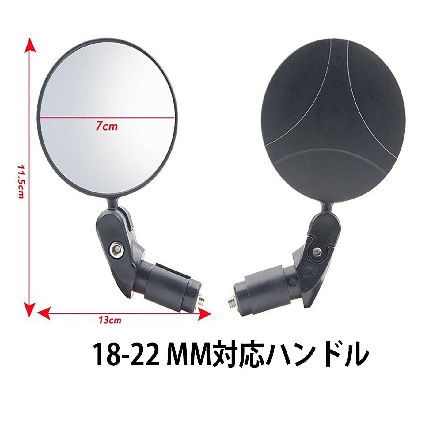 【商品仕様】ミラー直径: 7cm<br><br><br>長さ: 14cm<br><br><br>取り付け対応サイズ: ハンドル内径Φ17.4〜22mm