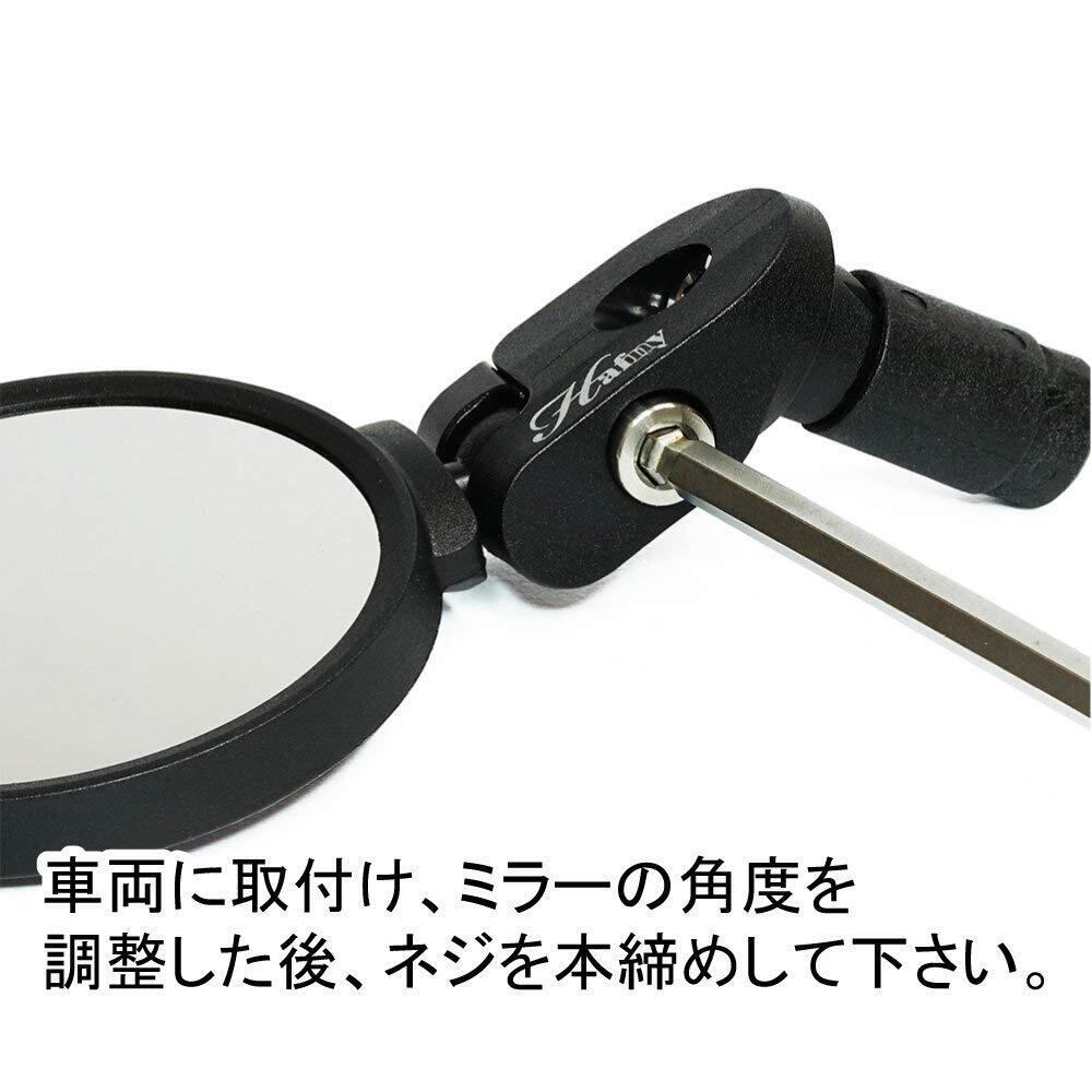 ハンドルエンド部へ取り付けるのでライディングの邪魔になりません。ハンドル部取り付け可能内径14.8~22.5mm ※各ボルトの締め付け・取付には5mmアーレンキーが必要です