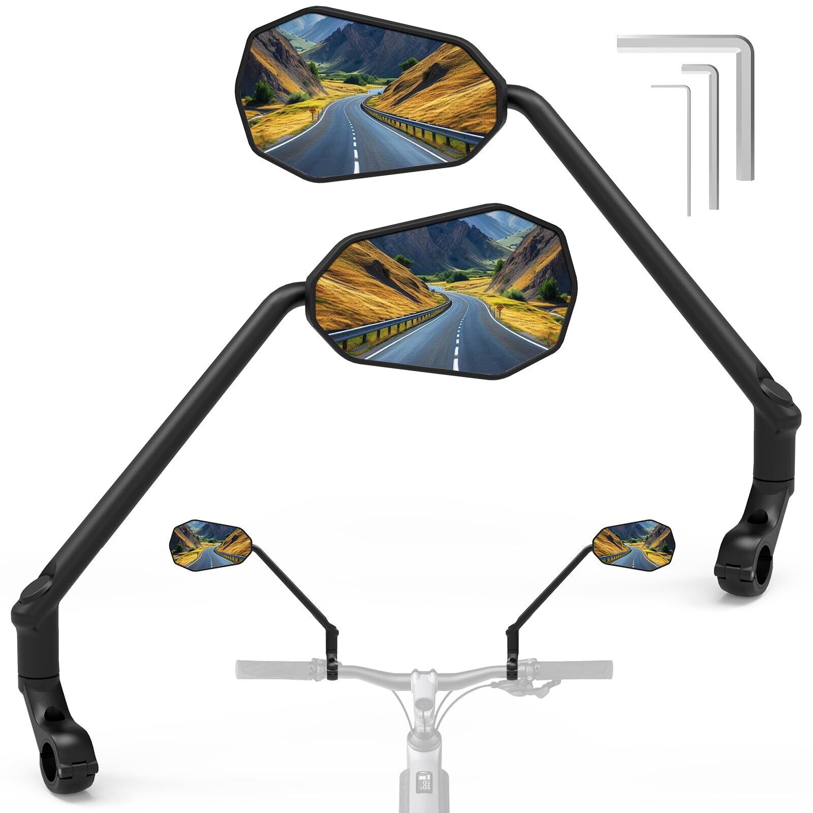 バイクミラー Diyife ロングタイプ HD広角大型ハンドルミラー、360°調整可能 耐風 耐振 大鏡面 自転車リアビューミラーアクセサリー、マウンテンバイク、ロードバイク、スクーター、モト用