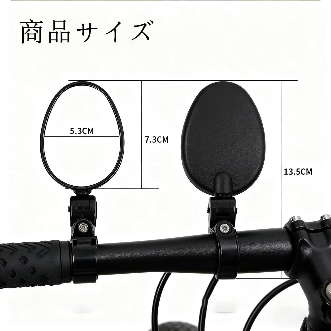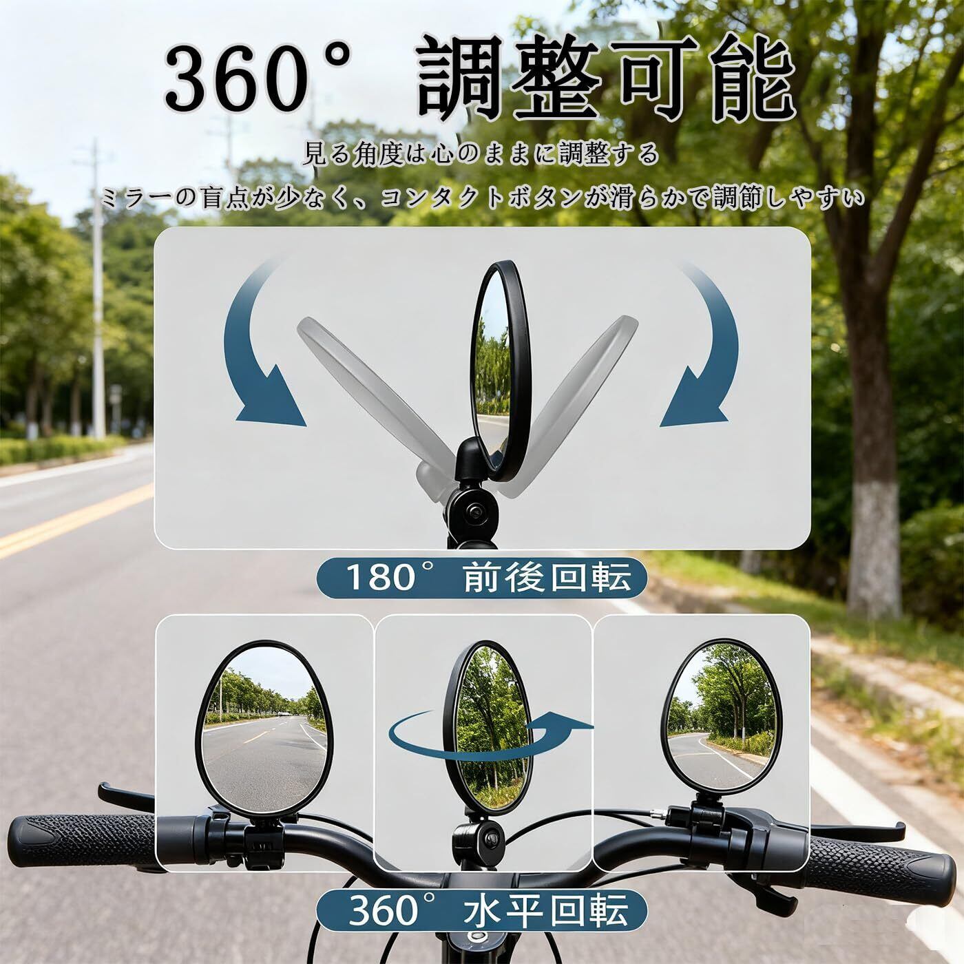 自転車バックミラー 2個セット 360度回転 広視野角 凸面ミラー 楕円形 軽量 簡単取付 アウトドアスポーツバイク対応