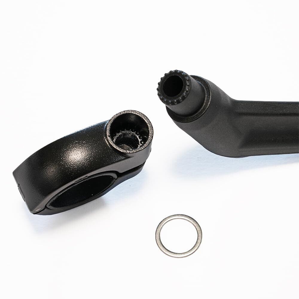 Hafny (ハフニー) バックミラー ミラーラウンドタイプ MkⅡ の、L.A(ロングアーム)タイプです。 アーム部を長くすることで、より後方確認がしやすい仕様です。 クランプ取付部のワッシャの有無でアームの角度固定・可動が選べます。