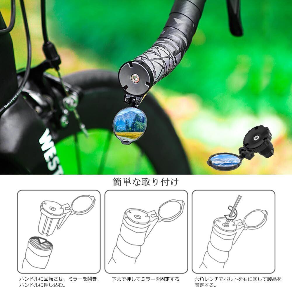 Wolfride 自転車バックミラー バーエンドミラー 360度回転可能 広視野角 丸型 凸面 取り付け簡単 事故防止 Φ21-22mm対応 サイクリングミラー 自転車ミラー 戸外スポーツバイク用ミラー 2個セット