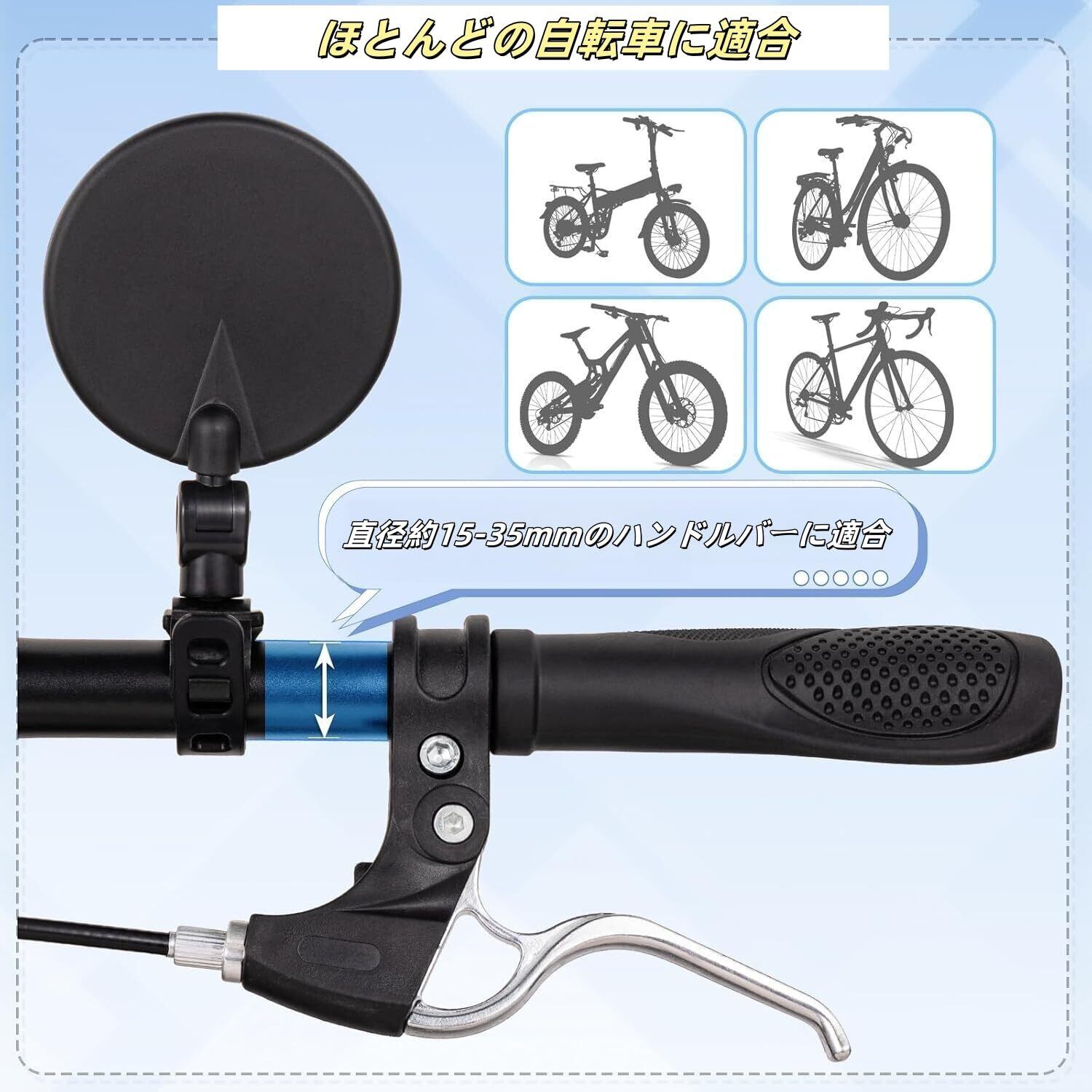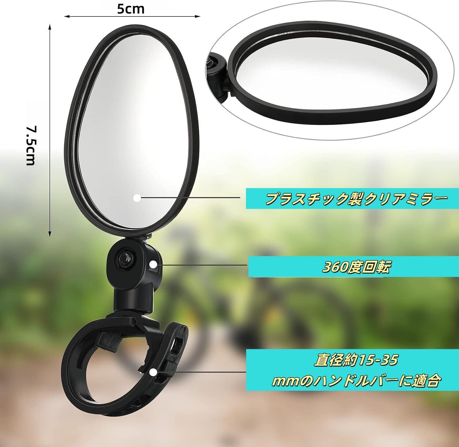 2個セット 自転車バックミラー360°回転 凸面 広視野角 戸外スポーツバイク用ミラー 簡単取付 調節可能 サイクリングミラー バーエンドミラー (楕円形)