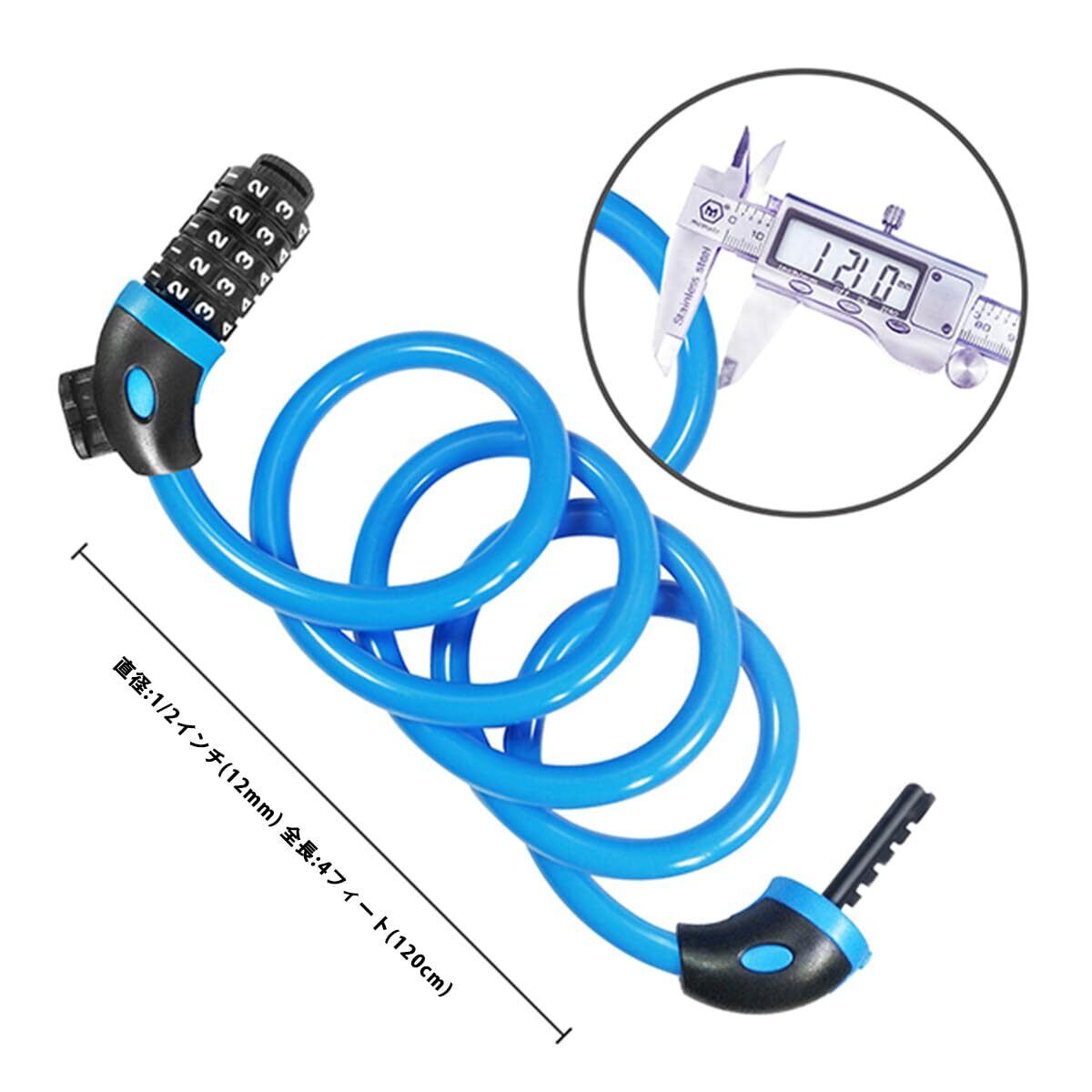 自転車 鍵 ワイヤー 長120cm 横断面直径12mm,5桁ダイヤル式 自転車 ロック 高強度ロックシリンダー,盗難防止 ロードバイク 鍵 高切断対抗 軽量 持ち運び簡単 ワイヤーロック 自転車/ロードバイク/MTB/電動自転車/バイク対応