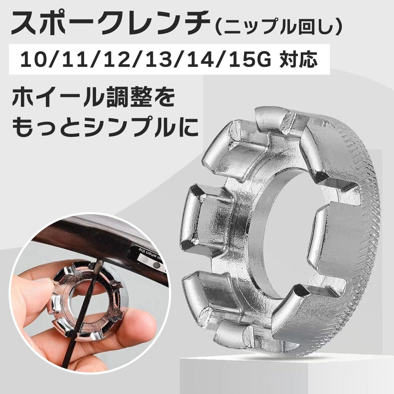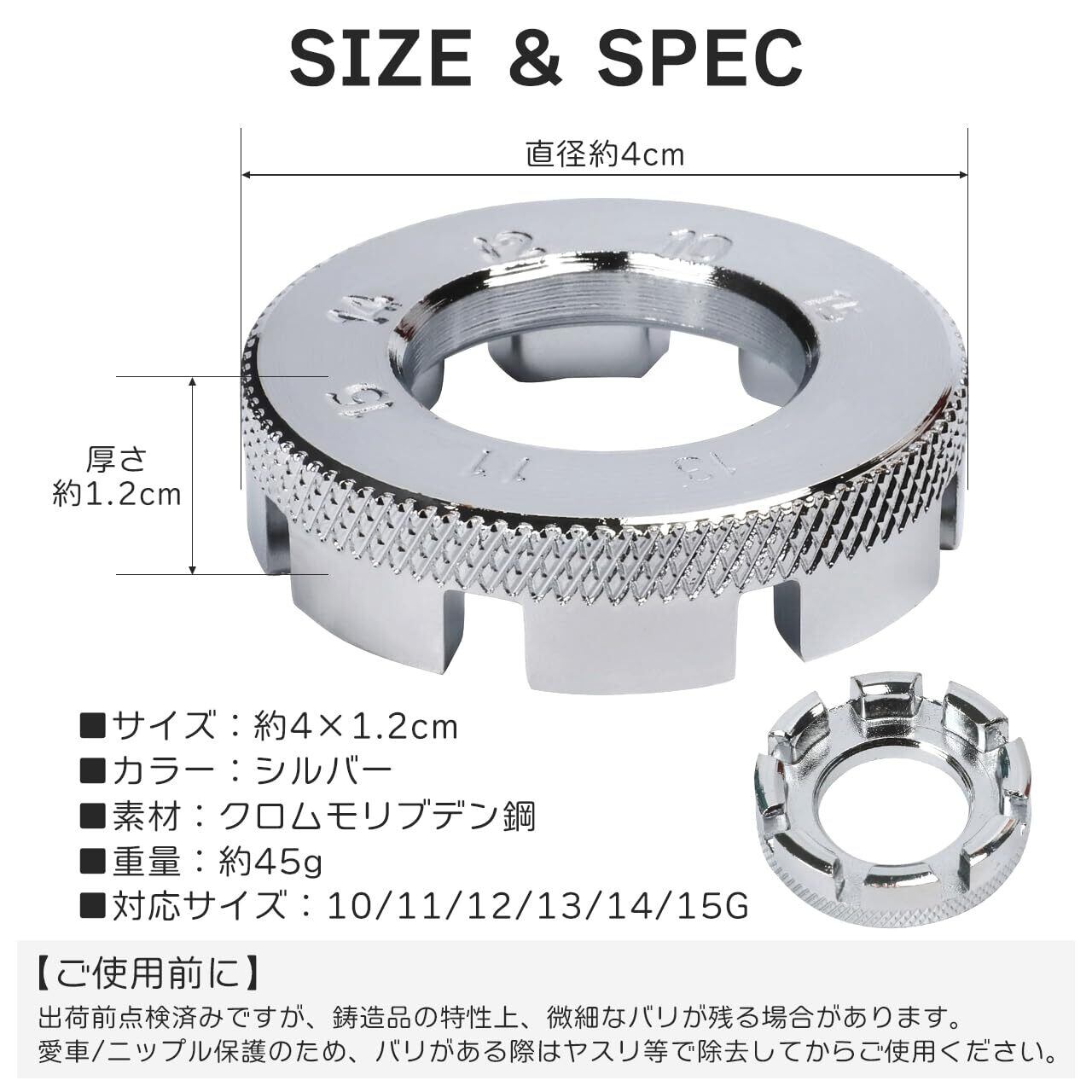 対応ニップルサイズ:スポークニップルサイズ10、11、12、13、14、15に対応しており、幅広い自転車のメンテナンスに使用できます。