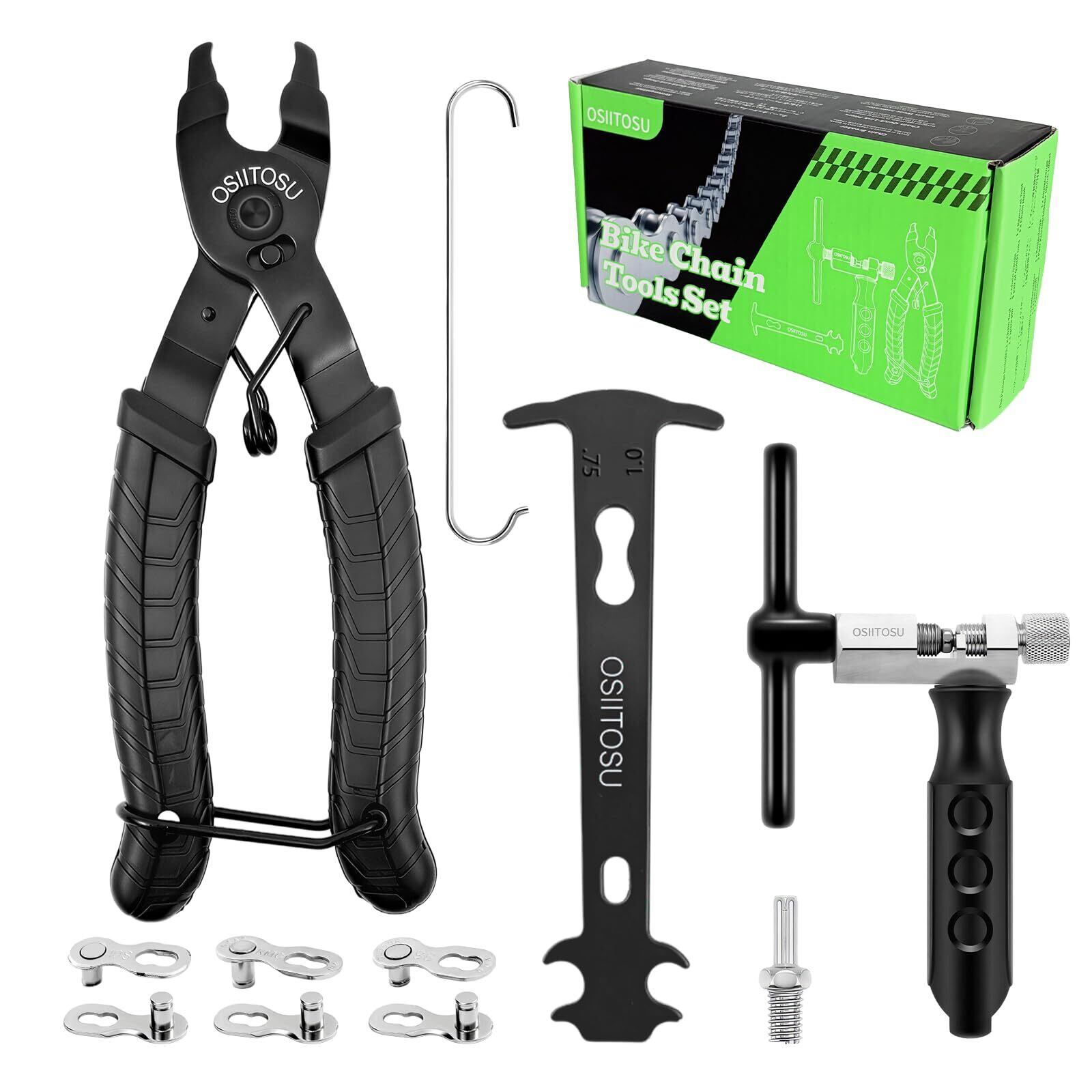 チェーンカッター チェーンツール チェーンプライヤー+自転車チェーンチェッカー 取り外しと取り付け+チェーン摩耗検出ゲージ (チェーンジョイントクランプ機能付き)+チェーンフック+マジックバックル+スラストピン 道路車8in1 8点セット 炭素鋼製 自転車チェーン工具 マウンテンバイク チェーン修復工具修理工具自転車取り外し修理ツールブラック
