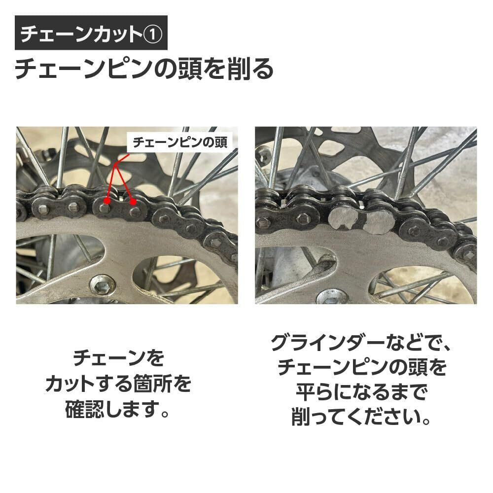 ※作業前に、必ずチェーンピンの頭をグラインダーなどで削ってください。