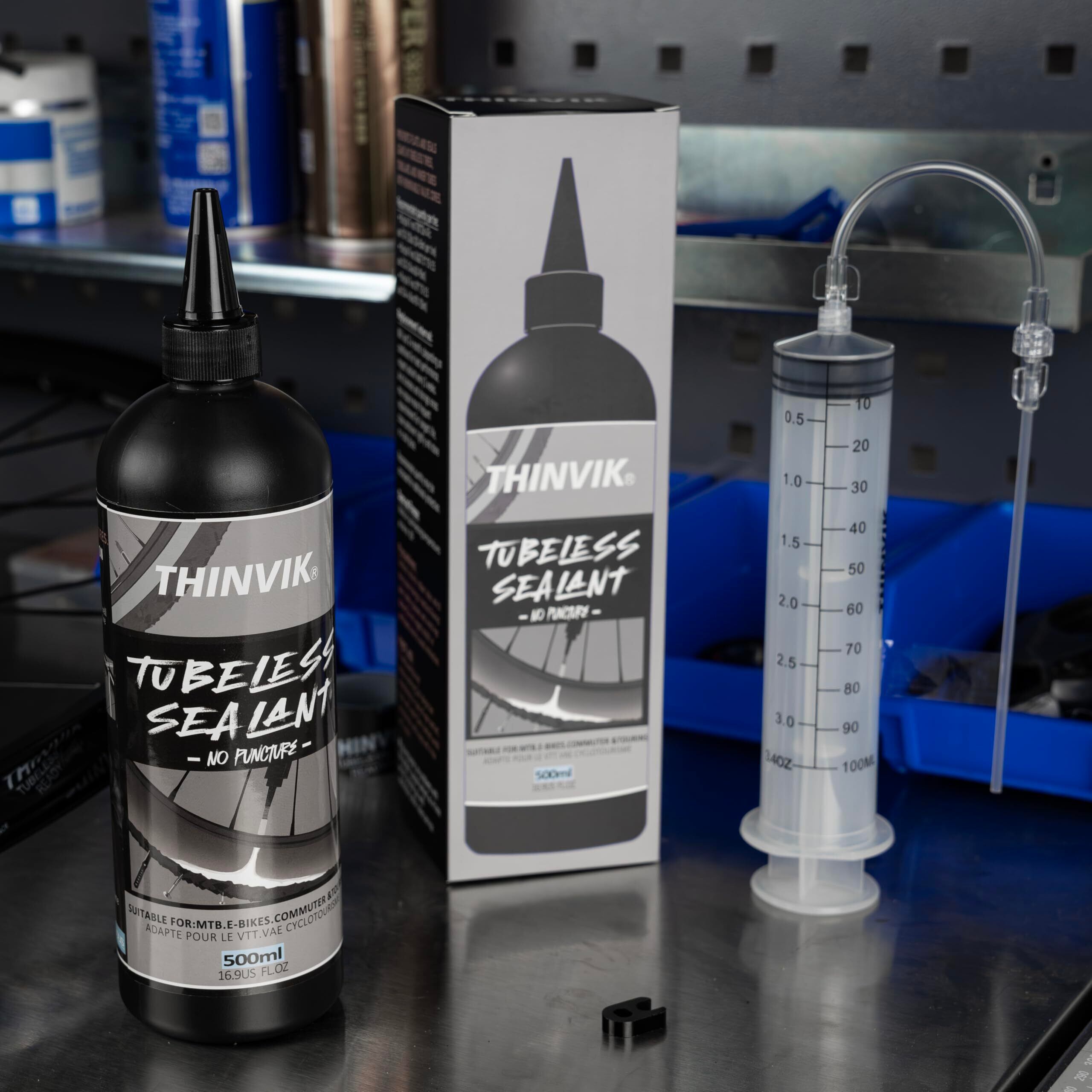 Thinvik 自転車 チューブレス シーラント パンク防止シーラント 修理キット (500ML(16.9oz) + インジェクターセット)