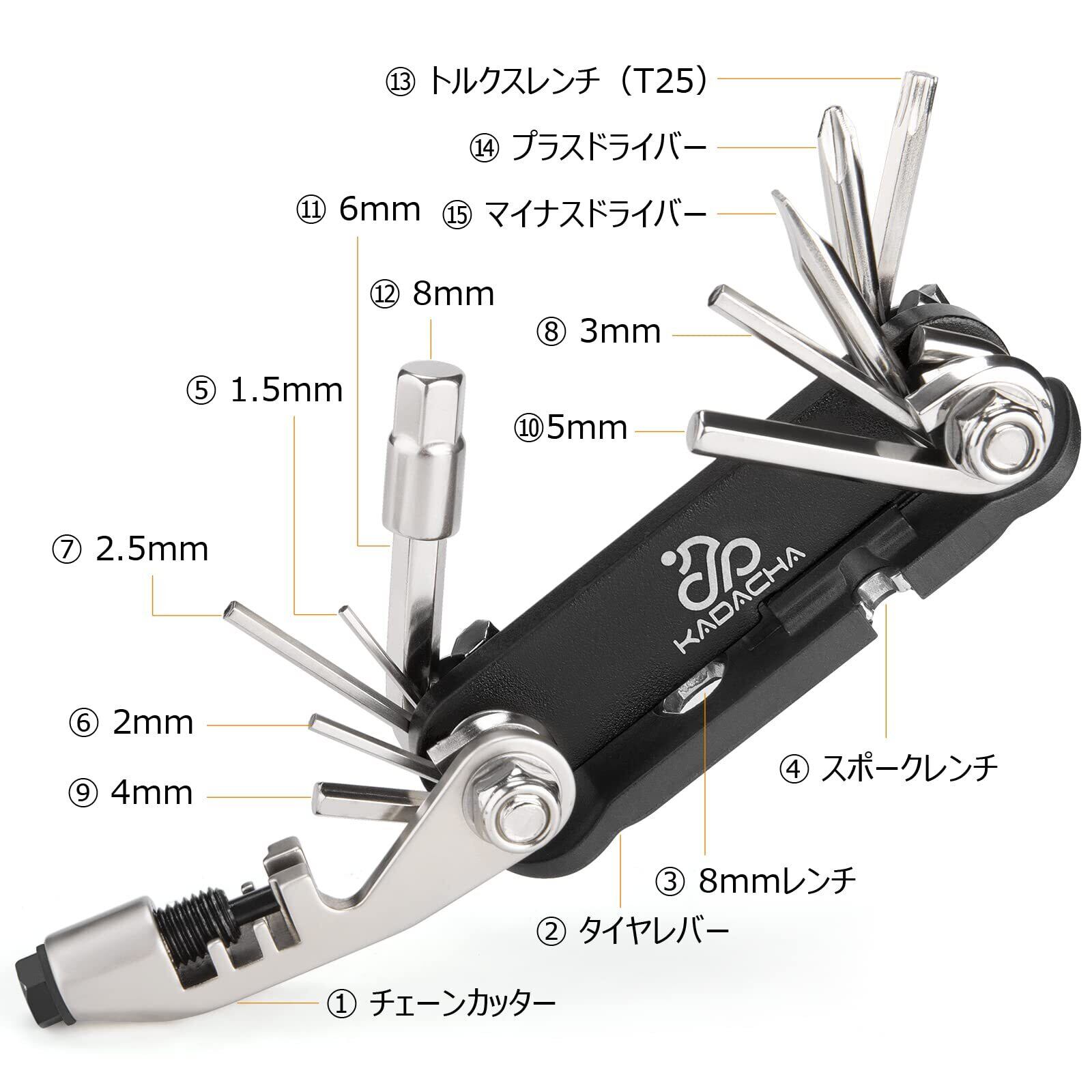 自転車 マルチツール 携帯工具 15機能 ロードバイクなど用、チェーンカッター タイヤレバー ブラック (PT-11)