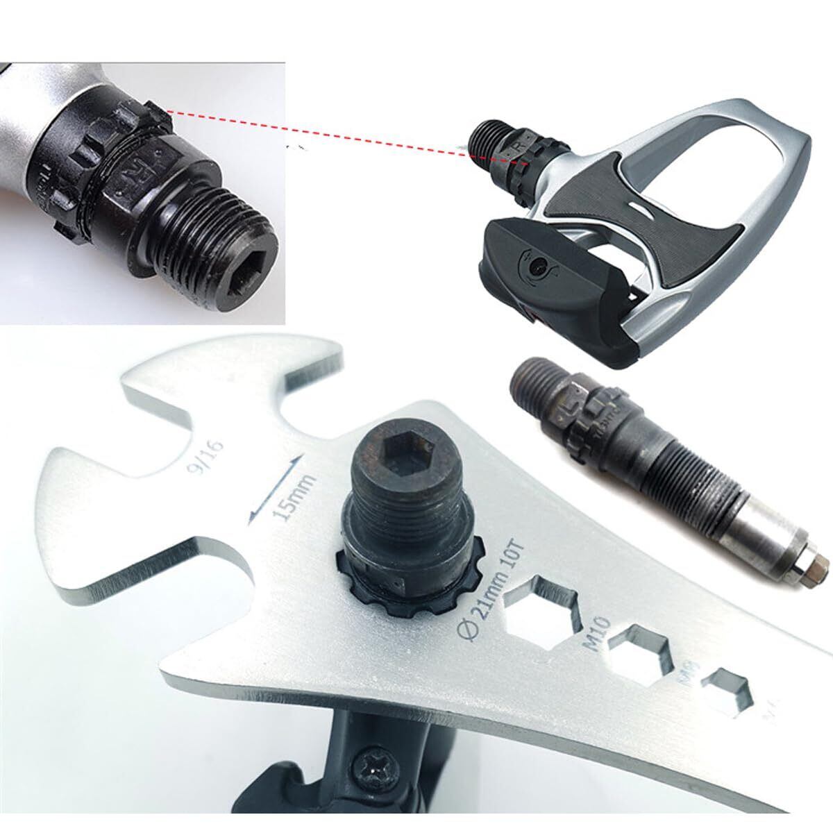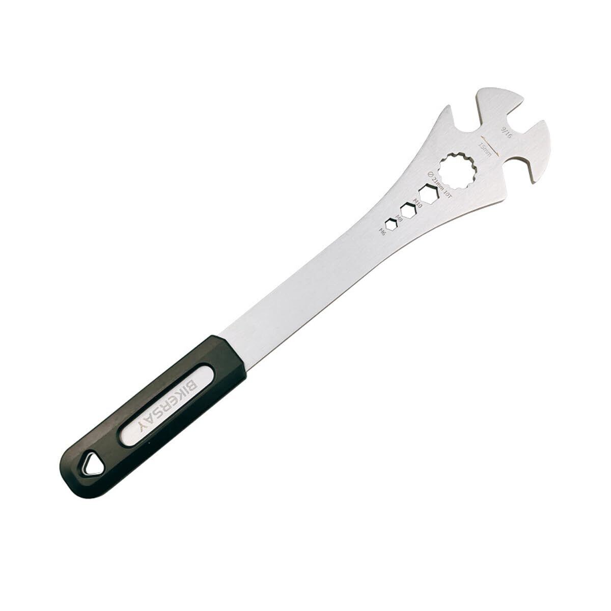 多機能ペダルレンチ ロードバイク&MTB用 - 6 in 1 ステンレススチール製 クリップレスペダルアダプター付き (15mm/9/16インチ) - 延長 (320mm) & 頑丈 (356g)