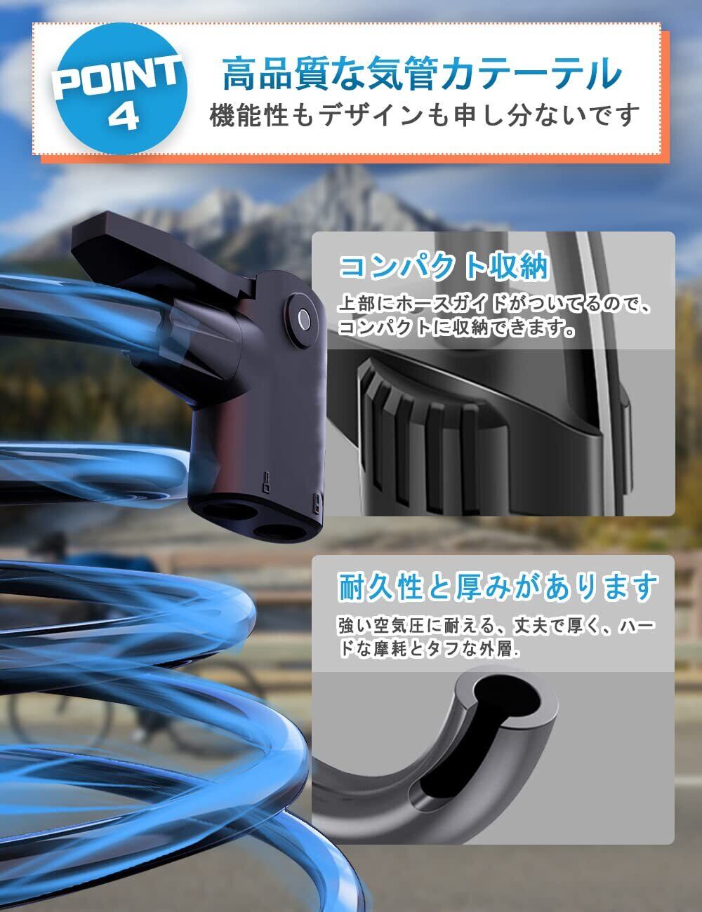 【160PSI/11BAR 抜群的耐久性】最大空気圧は11Bar(160PSI)で、ほとんどの自転車に使用可能です。高強度の外壁と高密度の筒身により、空気の利用効率が向上し、効率的な充気が可能です。ポンプの素材には、耐久性に優れた多層合成鋼材が使用されており、高い硬度を持っています。表面には金属コーティングが施されており、錆びにくく、長期間使用しても劣化しにくい仕様となっています。