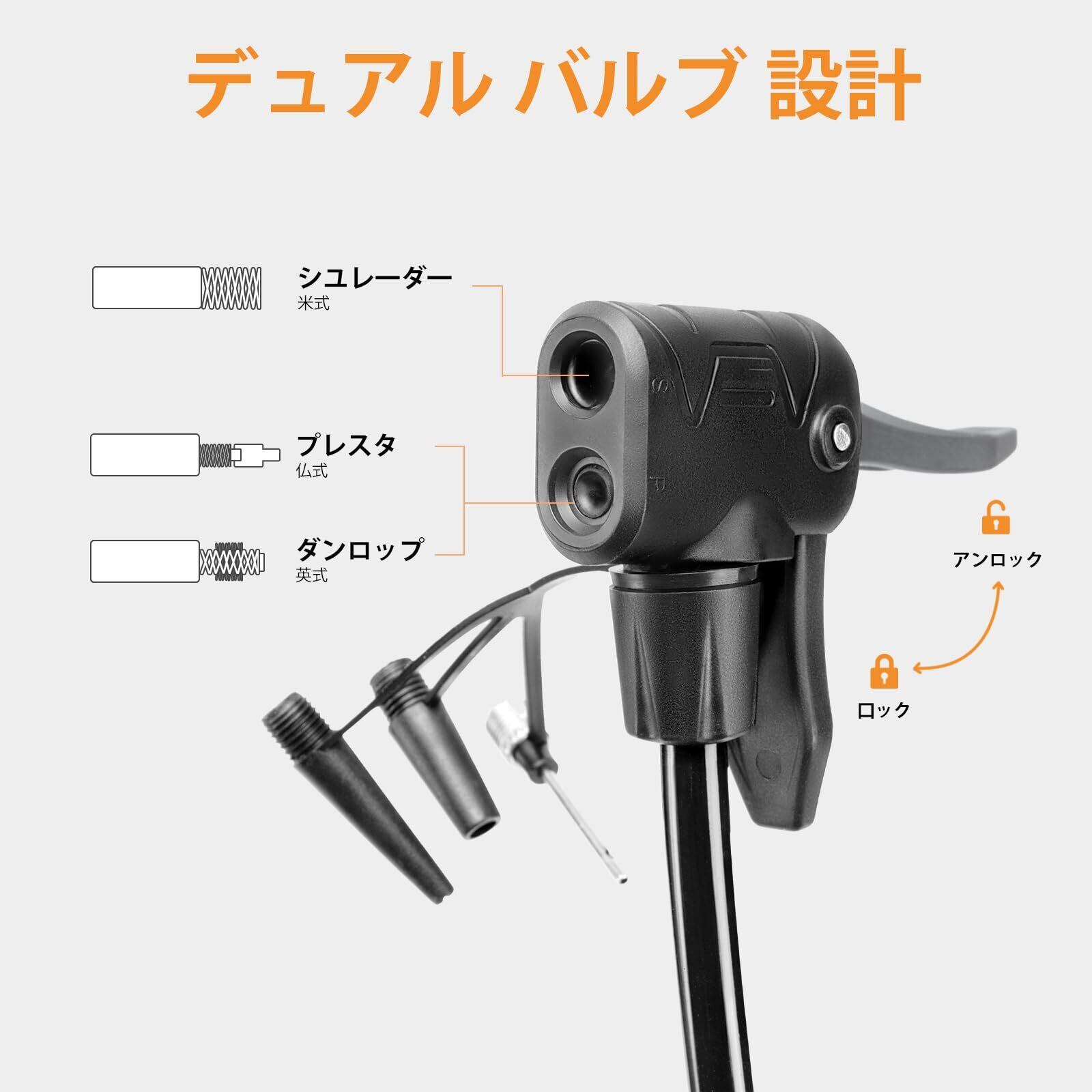 多用途対応 - 6個の変換アダプター付き!豊富な数量で絶対に足りる!このフロアポンプは、BMX、マウンテンバイク、ロードバイク、通勤自転車、電動自転車、バイク、エアベッド、浮き輪、バスケットボール、サッカーボール、インフレータブルマット、おもちゃのボールなどに使用可能です。
