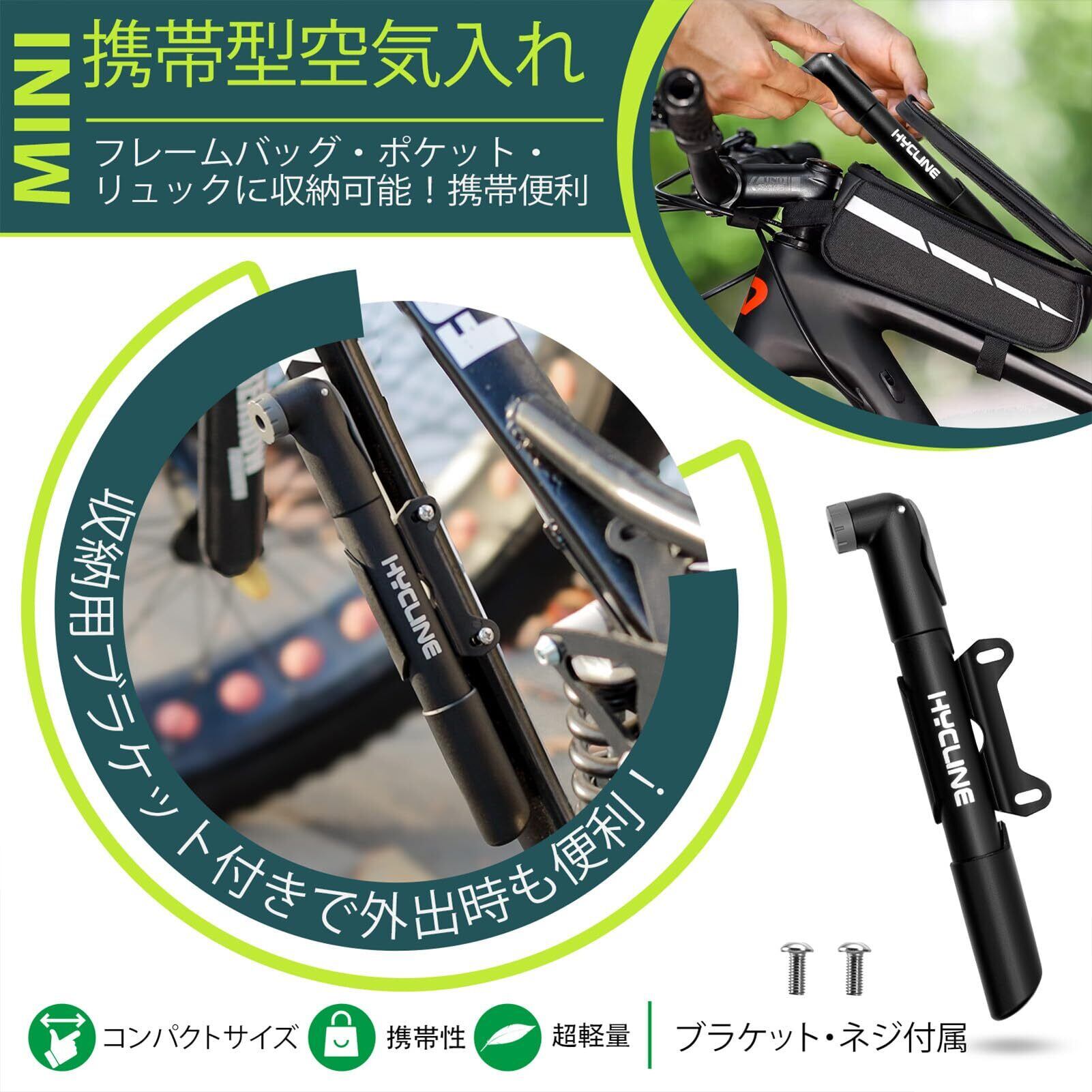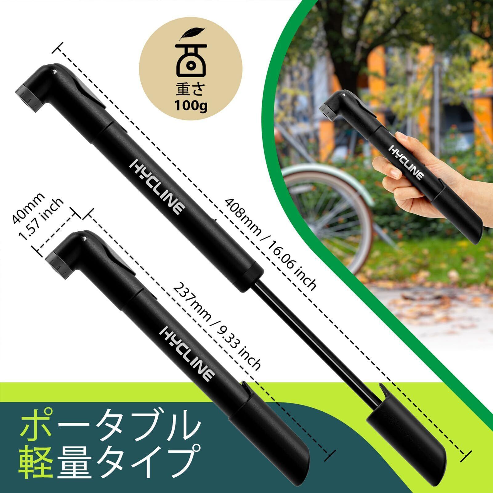 Hycline 自転車 空気入れ 携帯ポンプ ミニ小型 コンパクト 軽量 くうき入れ エアーポンプ 120PSI 英式 仏式 米式バルブ対応 フレームポンプ ロード/マウンテンバイク タイヤ ボール用