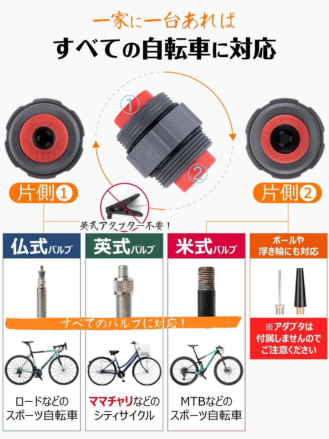 【全バルブ対応】口金結合部の向きを入れ替えるだけで、アダプター不要で仏式・英式・米式の全バルブに対応可能。