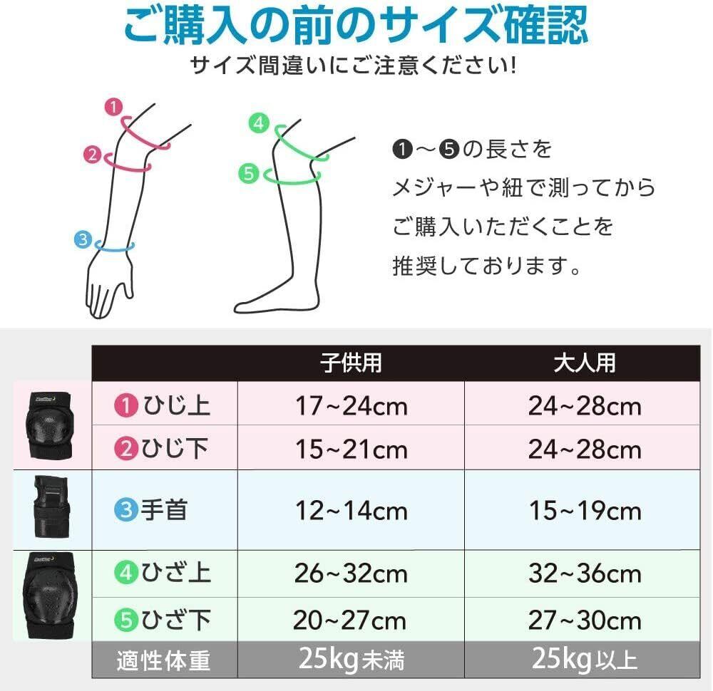 プロテクター キッズ 子供 大人用 手首/肘/膝 6点セット 自転車 スケボー バイク MoonWalk (S, 子供用)