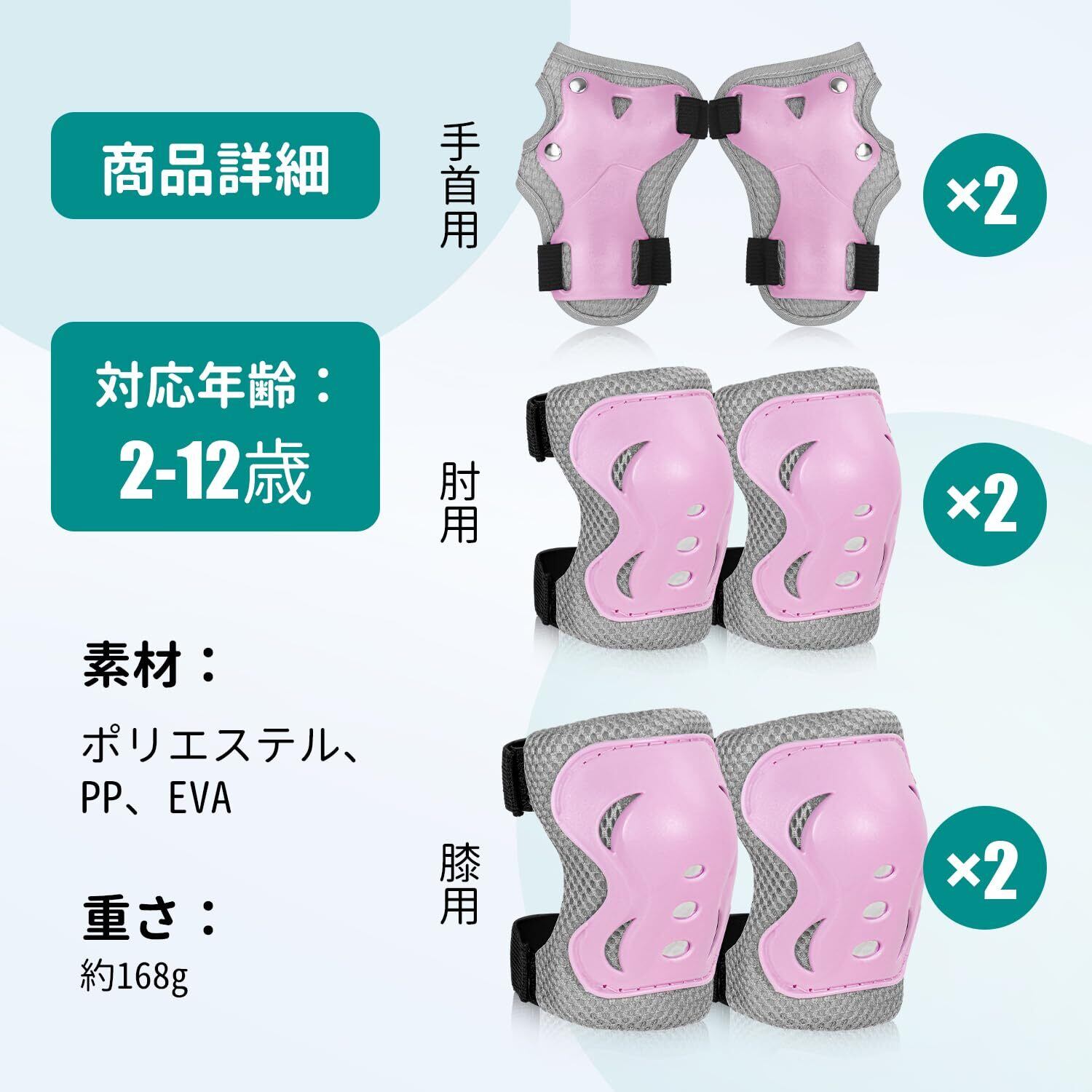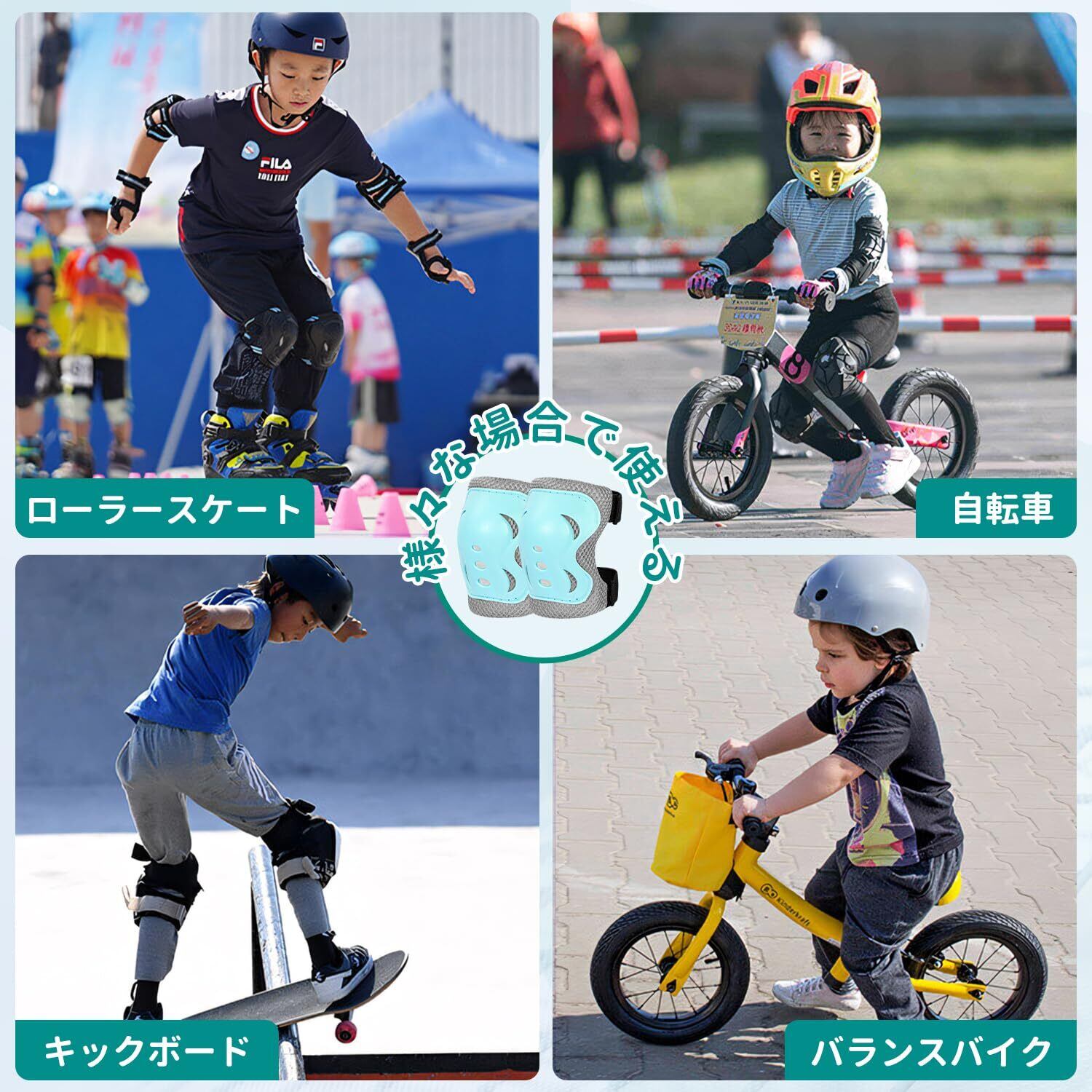 プロテクター キッズ 6点セット 子供用 年齢目安3~12歳 自転車 スケートボード ローラースケート バイク プロテクター キッズプロテクター 手首/肘/膝ガード 保護 収納袋付き