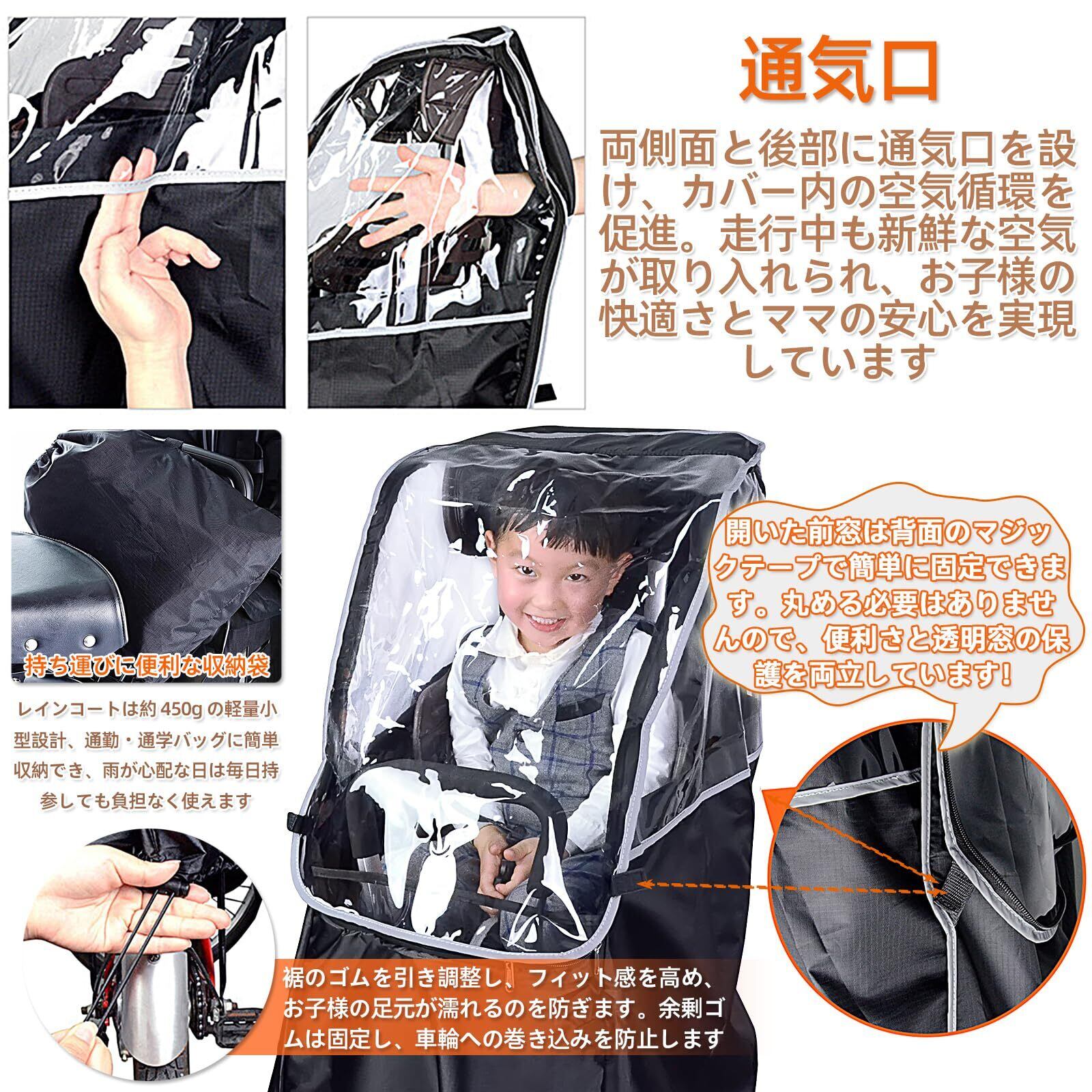 自転車 レインカバー 後ろ用 子供乗せ 防水 ナイロン 耐久性アップ 乗り降り簡単 広々空間 防寒 雨除け 丈夫で型崩れしにくい