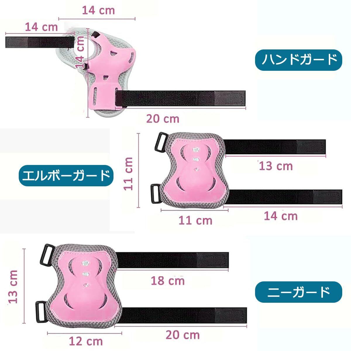 キッズプロテクター 6点セット 子供用 自転車 スケートボード ローラースケート用 肘 手首 膝ガード マジックテープ式 軽量 けが防止 男女兼用 おしゃれ かわいい 安全防具 屋外キャンプ