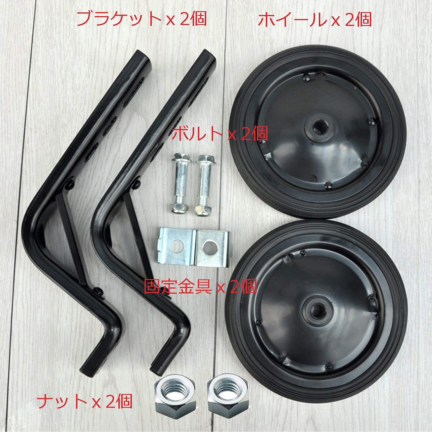 子供用自転車補助輪 training wheels 14/16/18/20インチ用 日本語説明書付き 静か キッズ 練習用 補助輪 子ども用自転車補助輪・アクセサリー トレーニングホイール 安定安全 補助りん 取付簡単 調整可能 黒