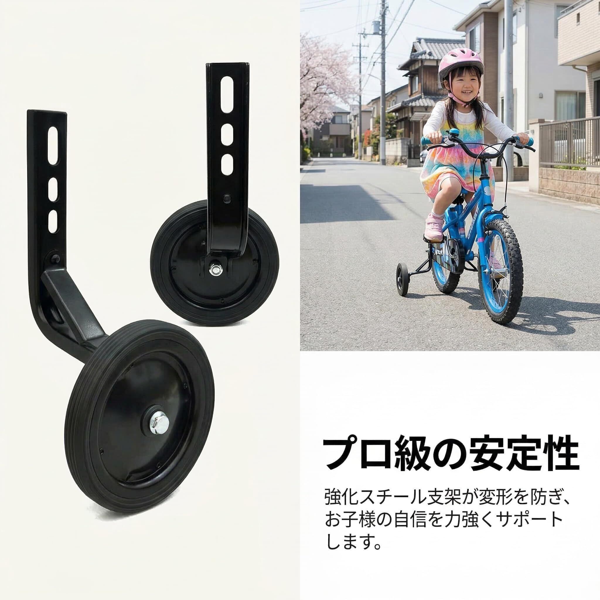 自転車 補助輪が高品質のセミスチールホイールでできており、より耐摩擦性であります。したがって、変形にくい、安定性がよいので、初めての子供でも安心して快適に乗ることができます。